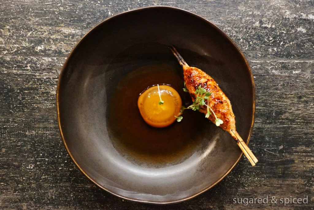 Chicken Meat Tsukune, Citrus Cured Egg Yolk.