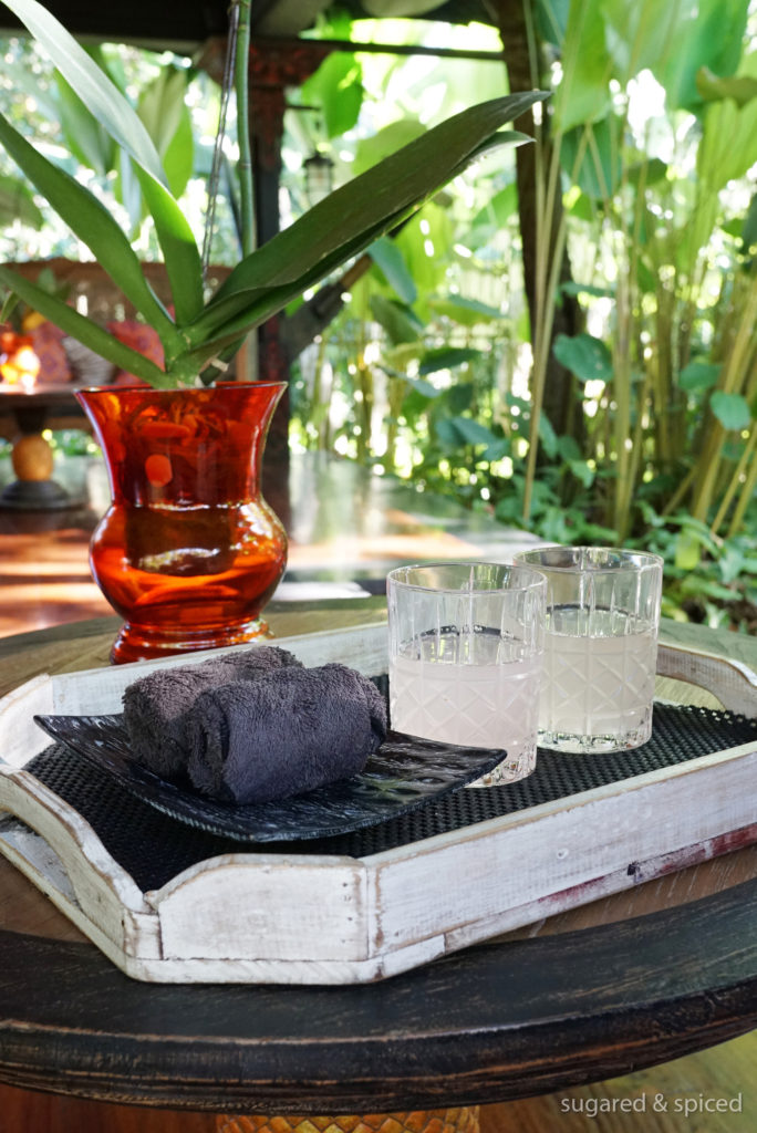 Welcome drinks, extra refreshing after our almost two-hour car ride.