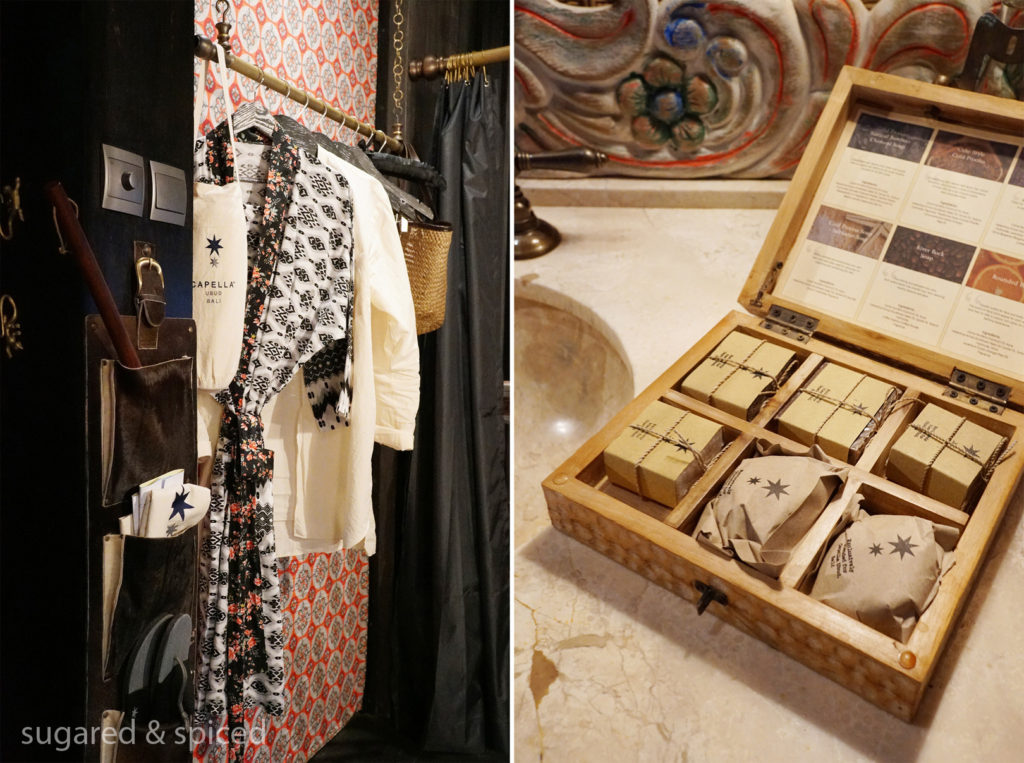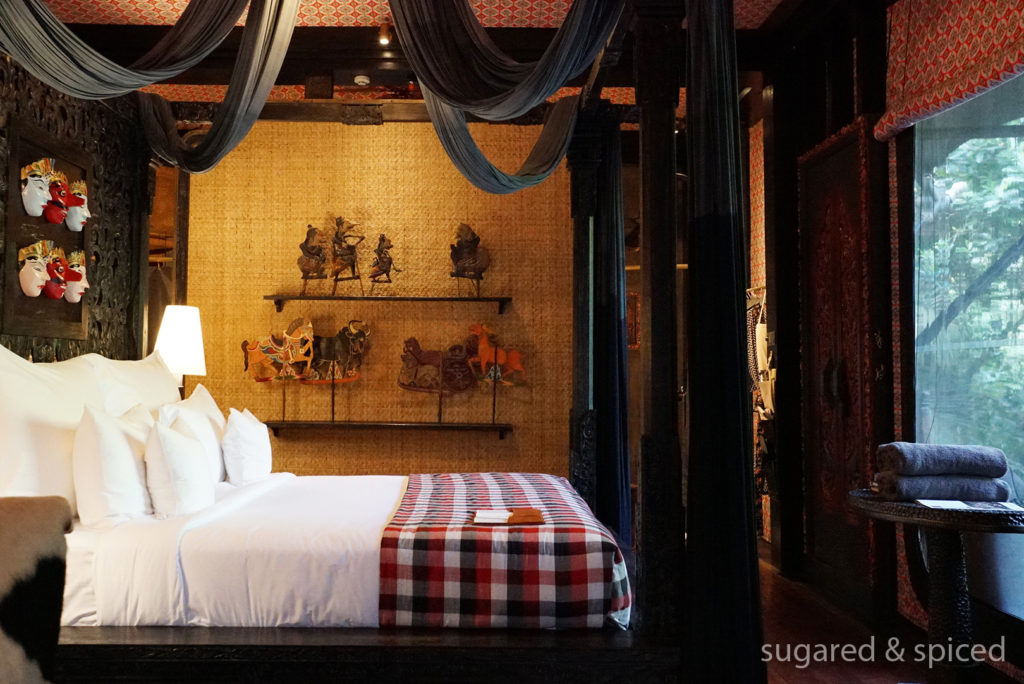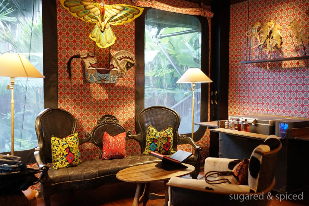 The tent looks rather understated from the outside, but it’s a different world once we stepped in. Each tent at Capella Ubud is designed with a unique role in mind – the captain, the cartographer, the baker, the birdwatcher…reenacting the lives of those early settlers in Bali. We were to stay at “The Puppet Master’s Tent” – what is that supposed to look like?