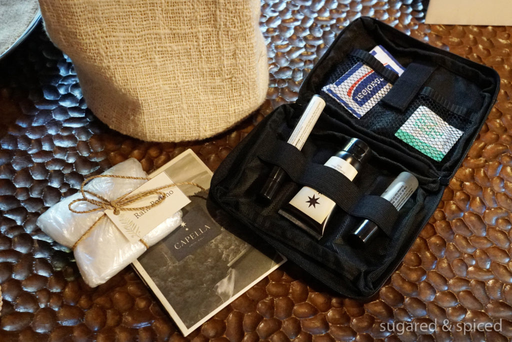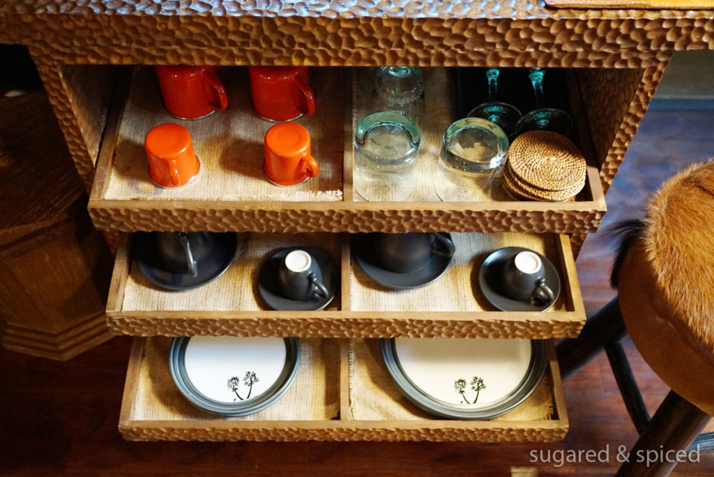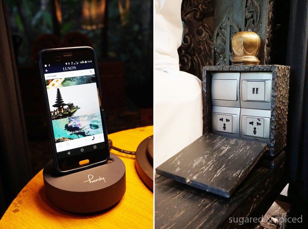 A cool feature Capella provides is this handy phone pre-loaded with sight-seeing tips, internet, and free domestic and international calling plans. There’s even a button which you can press to call the resort directly, a very convenient feature when you are outside the resort and are in need of help. The picture on the right shows the bedside plugs which can be hidden when not in use, a small but thoughtful detail. Do note that TV & sound systems are only provided on request, but honestly, who needs these when surrounded by nature as beautiful as this?