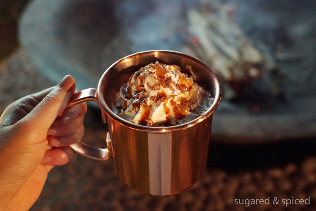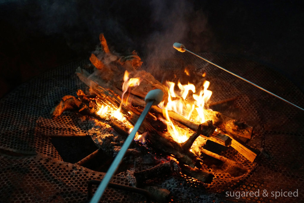 After a most satisfying dinner, we sat by the bonfire for some roasted marshmallows and hot chocolate, with a black-and-white film playing on the background. Not a bad way to spend the evening, wouldn’t you agree?