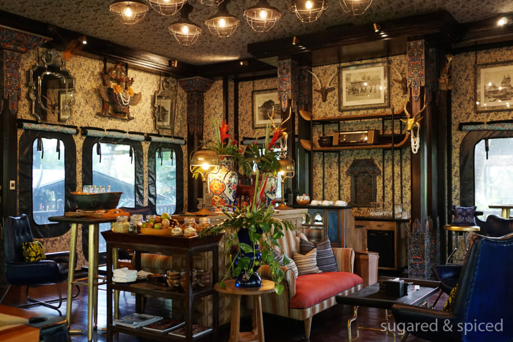 After ample rest in the tent, we strolled over to The Officer’s Tent for a pre-dinner cocktail. This extravagant living room is exclusive to guests staying at Capella Ubud, and serves morning coffee, afternoon tea, and evening cocktails in addition to offering a selection of books, magazines, and board games.