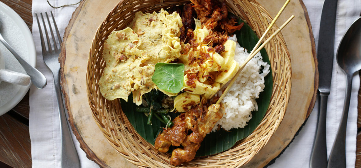 再嚐點峇里島特色早餐 – martabek telur、ikan goreng、nasi campur…雞肉沙爹、香蕉葉米飯、炸魚、辣醬,都很美味!