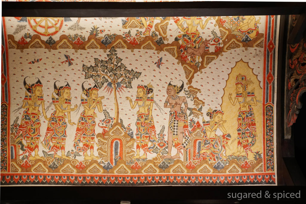 Love the fan design and the beautiful tapestry up on the ceiling depicting Balinese myths.