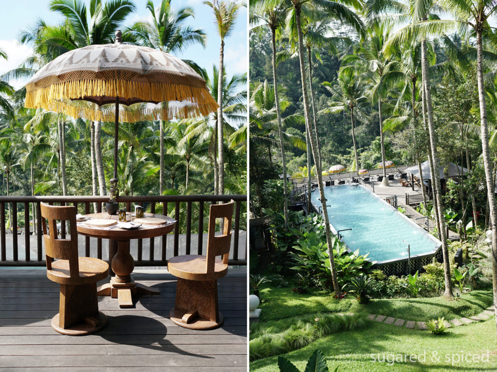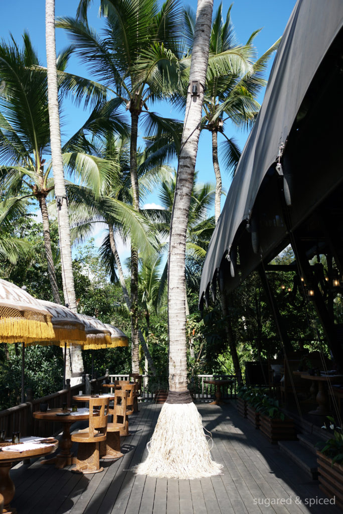 In my previous post I’ve mentioned that not a single tree was cut down during the building of Capella Ubud, so it’s no surprise to see a tree growing right through the deck of Mads Lange like this:
