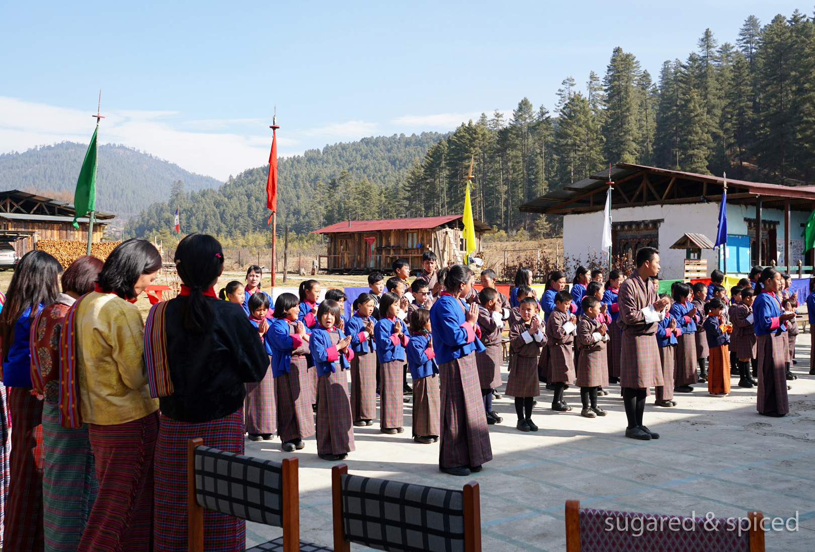 Today, we were to make a 3-hour drive from Gangtey to our next destination – Punakha. But first, I had requested to observe a special assembly at the local village school, organized in celebration of the birthday of none other than His Majesty The King of Bhutan.