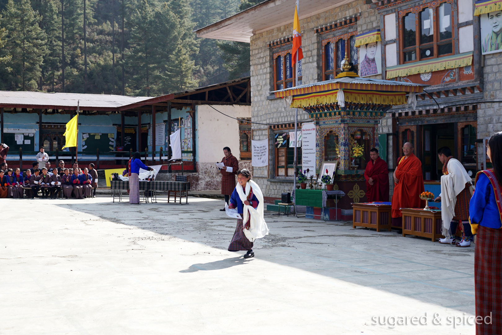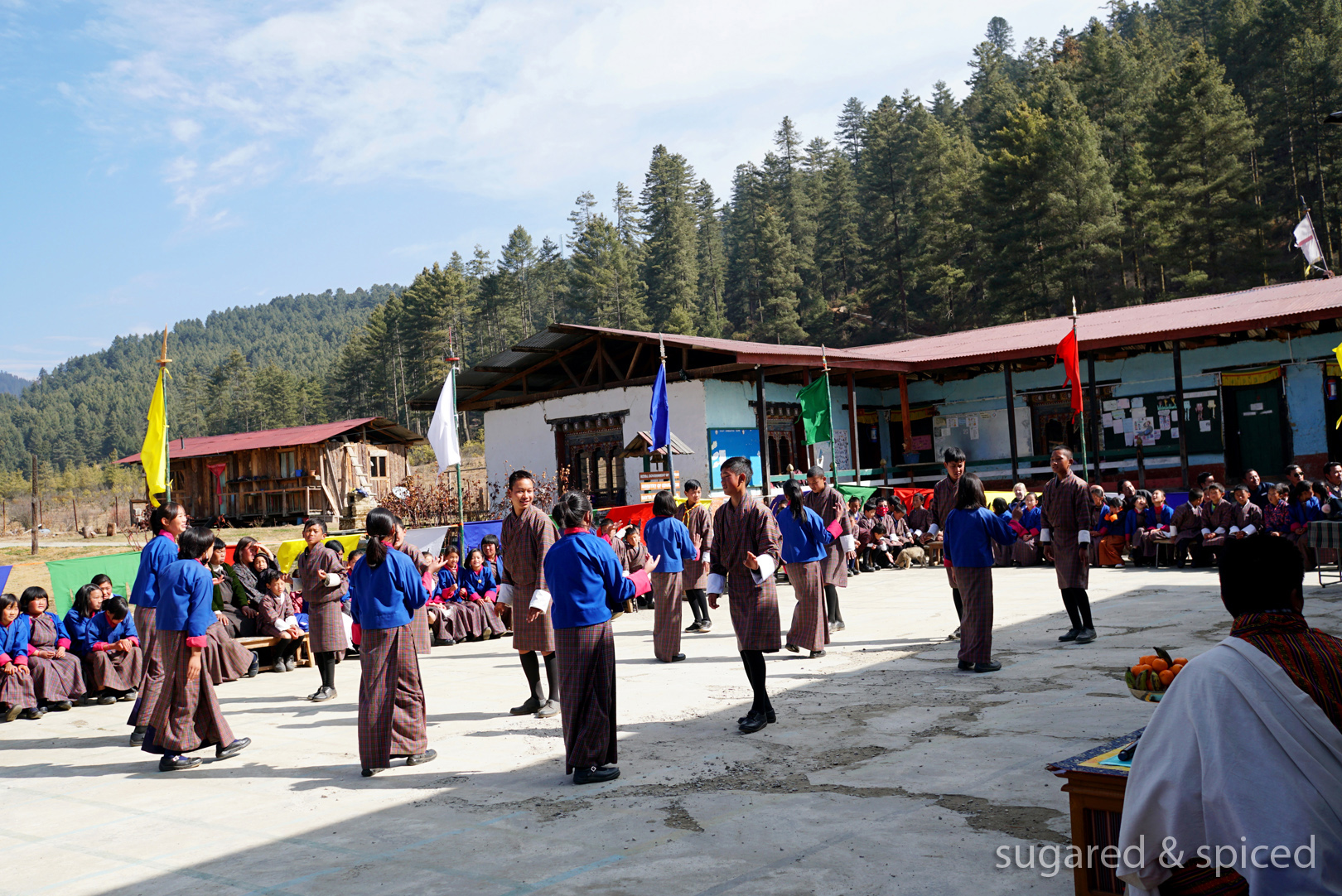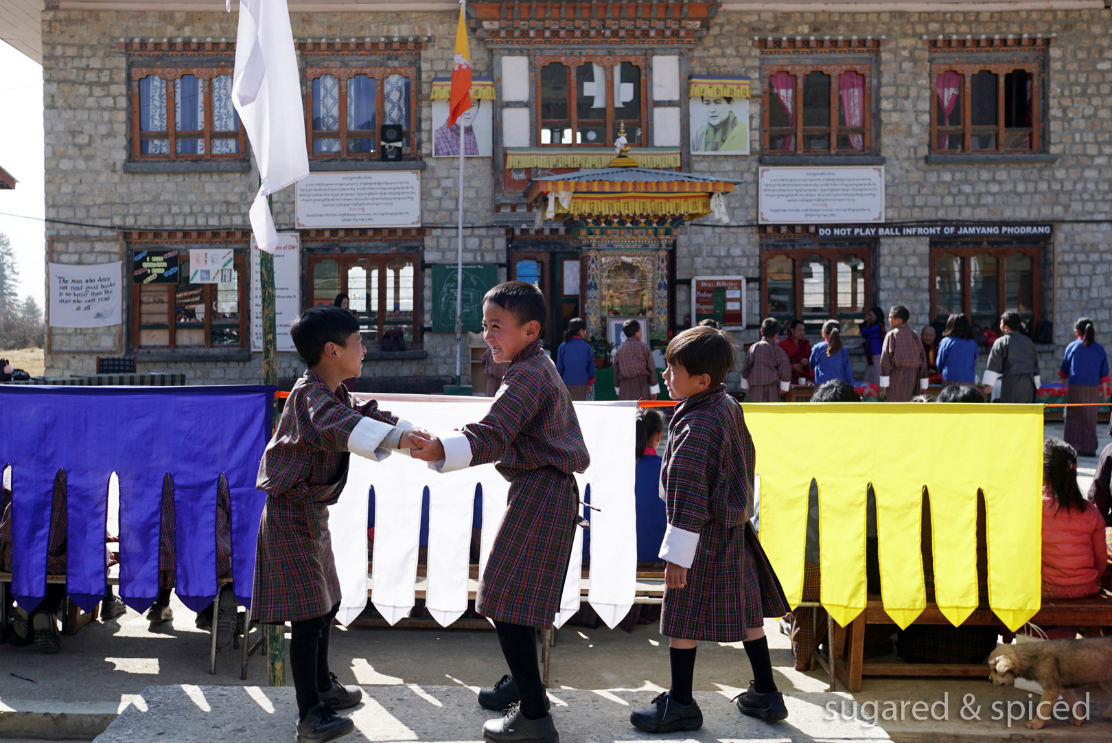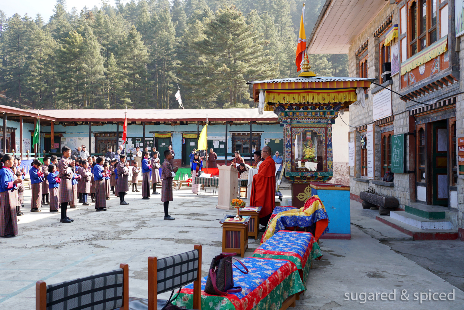 But at least for now, in this remote village in Gangtey, children still seem to be pure, carefree, and very happy. We arrived just in time for the assembly, which commenced with a quiet prayer led by a senior monk from Gangtey Monastery, followed by lively dance performances from the students. I marveled at the energy, feeling that it’s rather serendipitous for us to be in Bhutan on the day of the King’s birthday, and to be able to partake in this overflow of positivity.