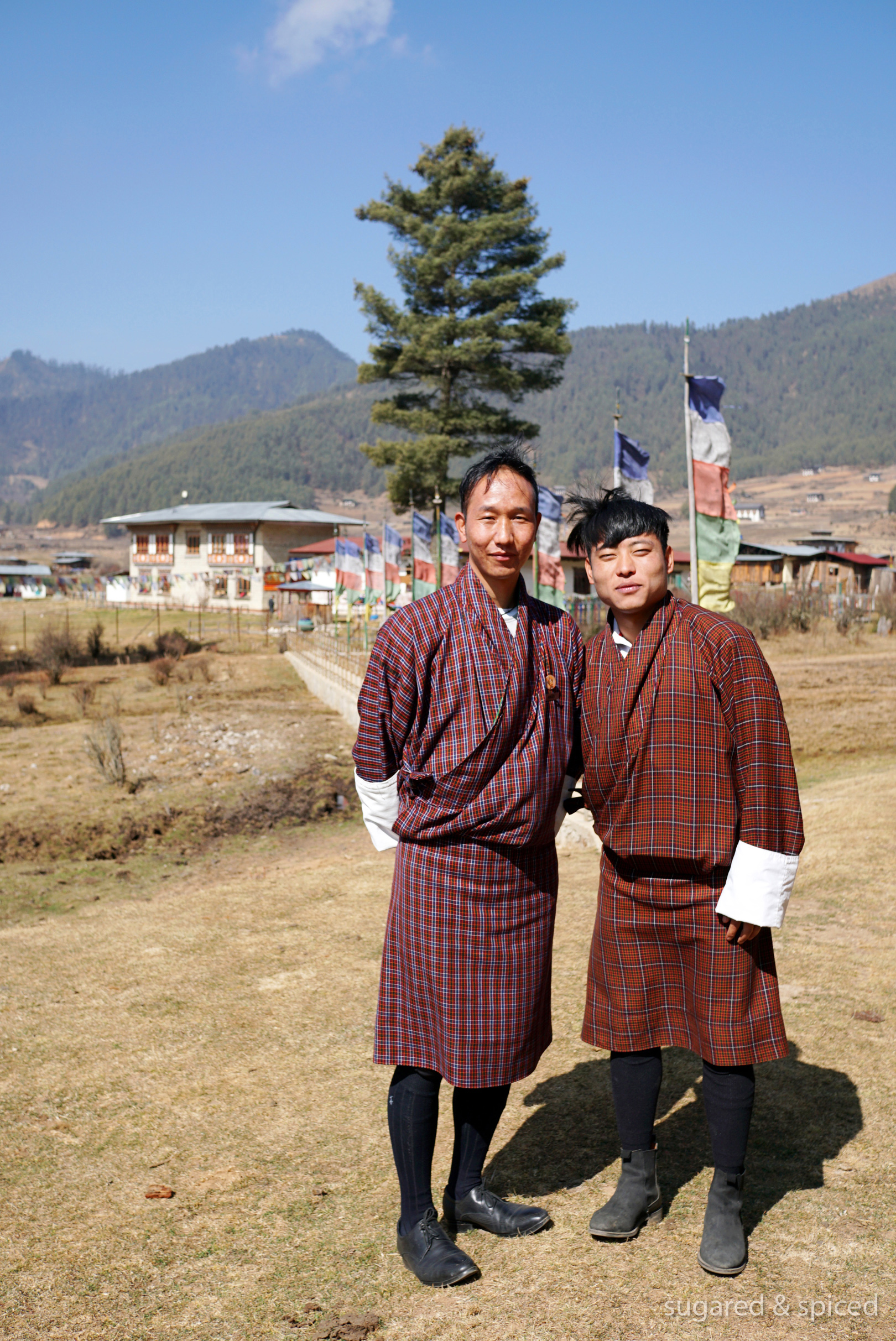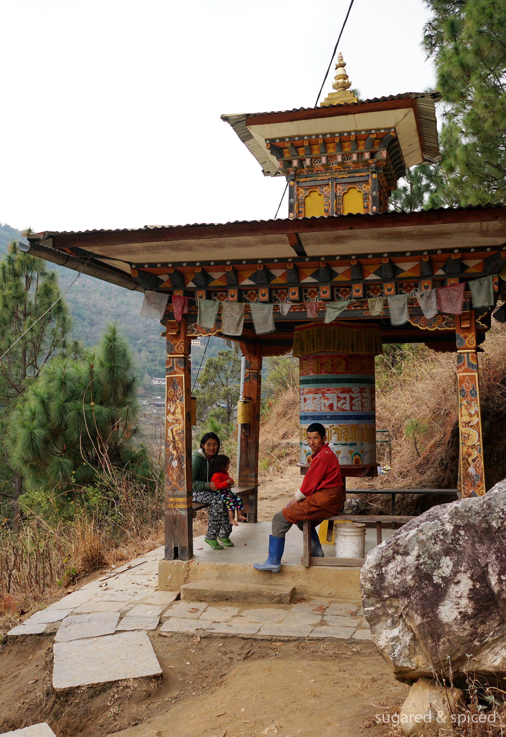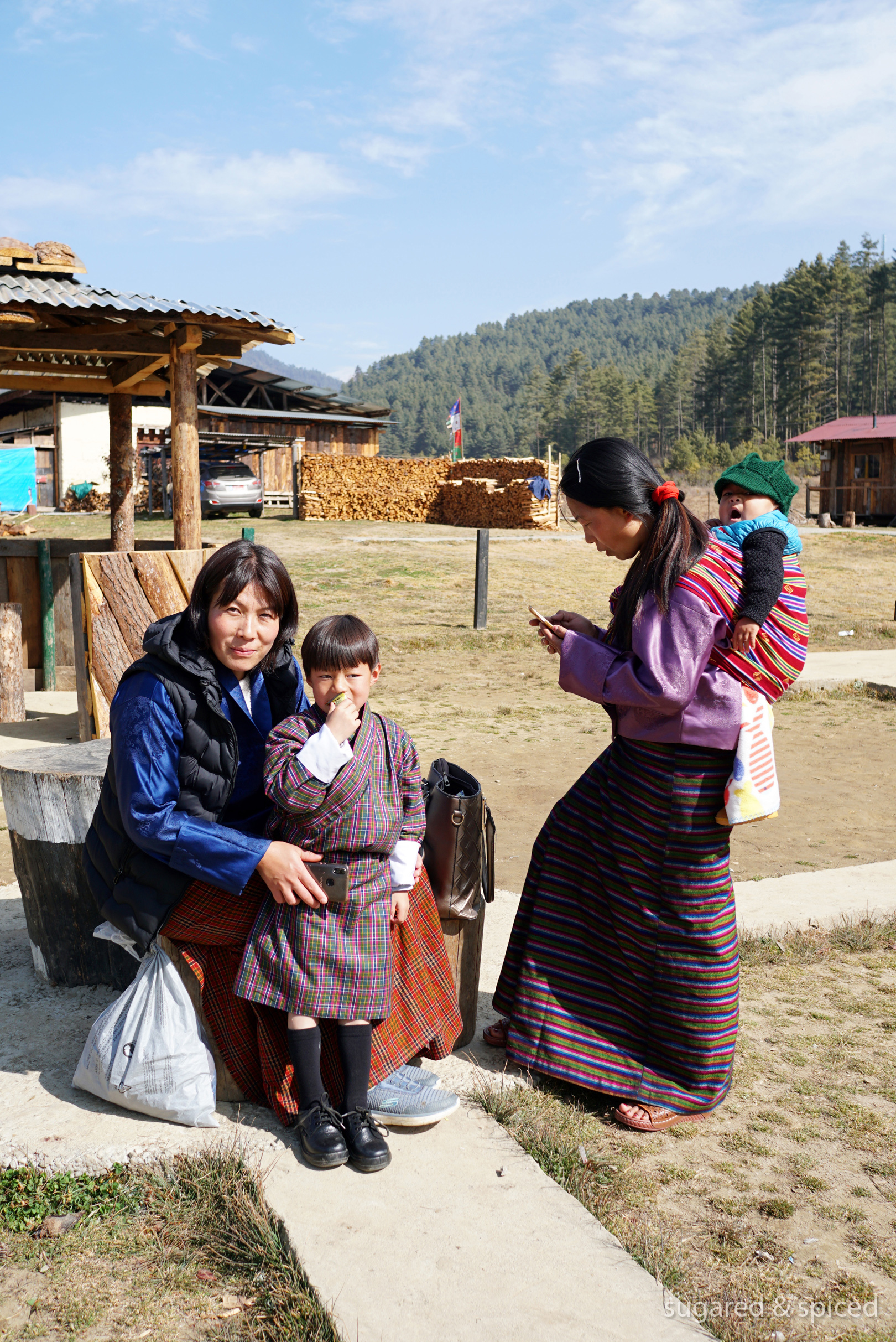 The scenic route was made even more memorable by the kind faces we saw along the way. First, there was a group of 7 or 8 teenage students in their goh and kira. They were coming down the hill as we were climbing up, and we crossed path amidst the rice paddies. “Kuzu zangpo“, they said hello to us in Bhutanese, with a shy expression and smiles so pure and genuine, I couldn’t help but stare for a second before I returned the greeting.