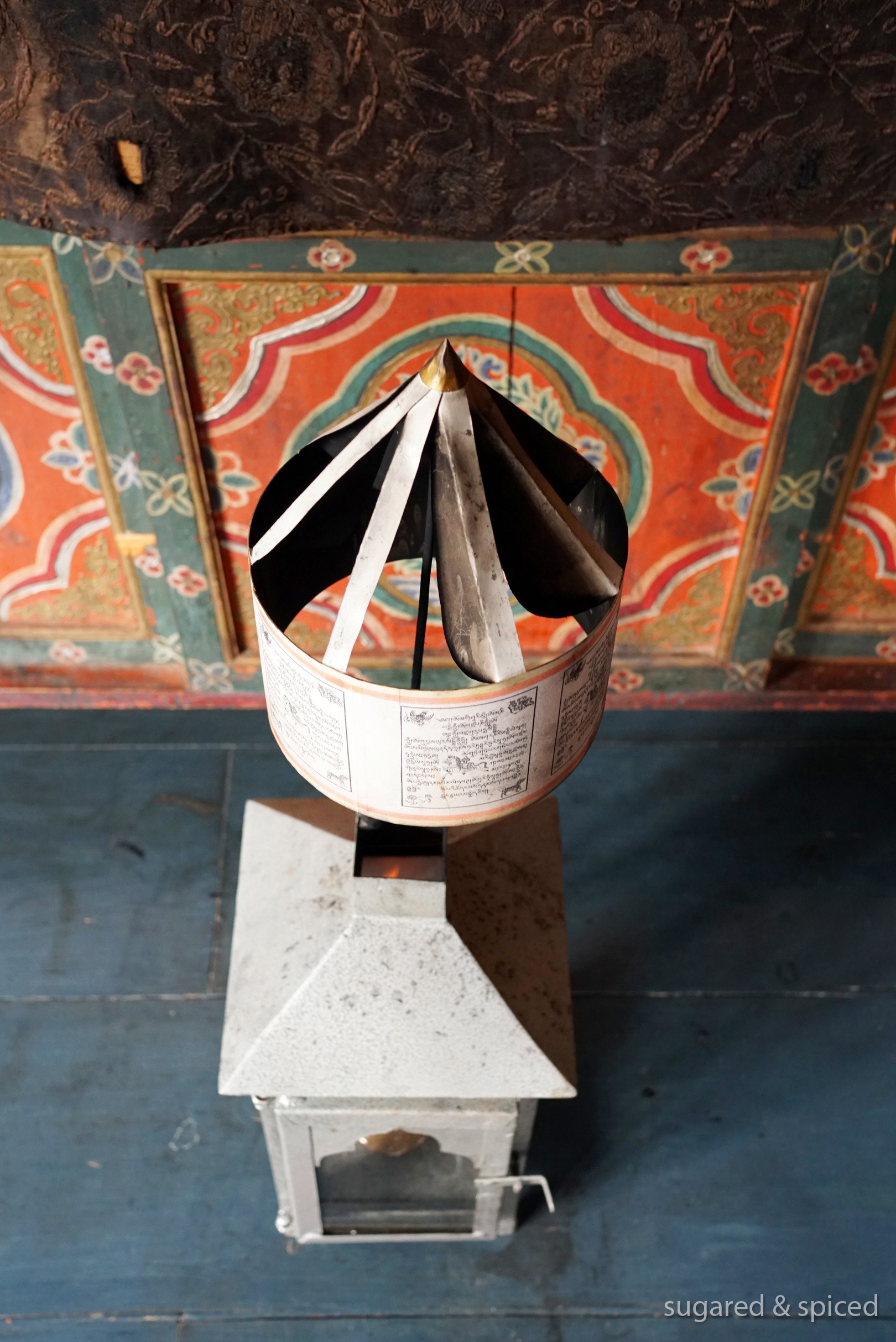 The main chorten was unlike any we’ve visited so far. Upon entering, we immediately came face to face with an imposing statue of Vajrakilaya, the wrathful deity most known for his power in subjugating demons and other obstacles to enlightenment. The giant statue of about 5 meters tall practically fills up the whole room, and upon closer observation, it actually consists of 103 sculptures, each a different manifestation of Vajrakilaya carved in dizzying details and painted in brilliant colors. Wearing a crown of skulls, with weapons in his hands and demons under his feet, the statue was truly an overwhelming presence.