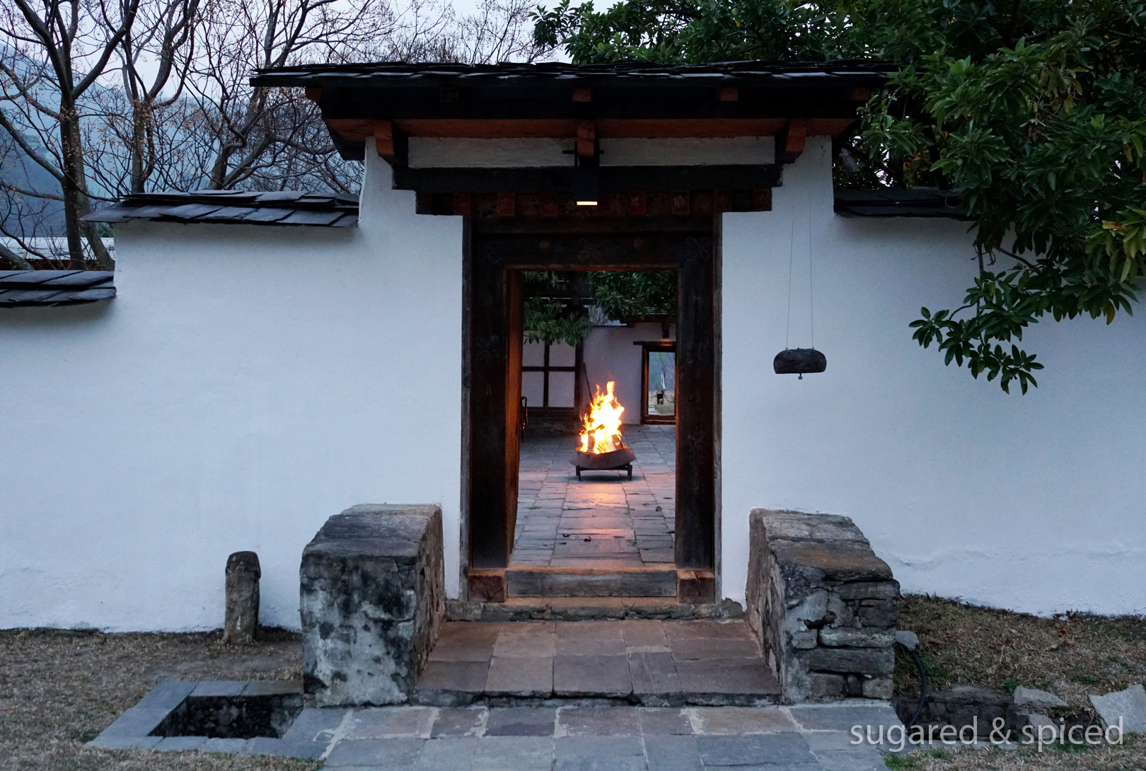 A short buggy ride later, we arrived at Amankora Punakha. It was immediately obvious that this lodge had a drastically different ambience from the previous two we stayed at. Instead of being surrounded by a field of tall, majestic blue pines, we were now in a manicured garden of orange trees and poinsettia bushes.