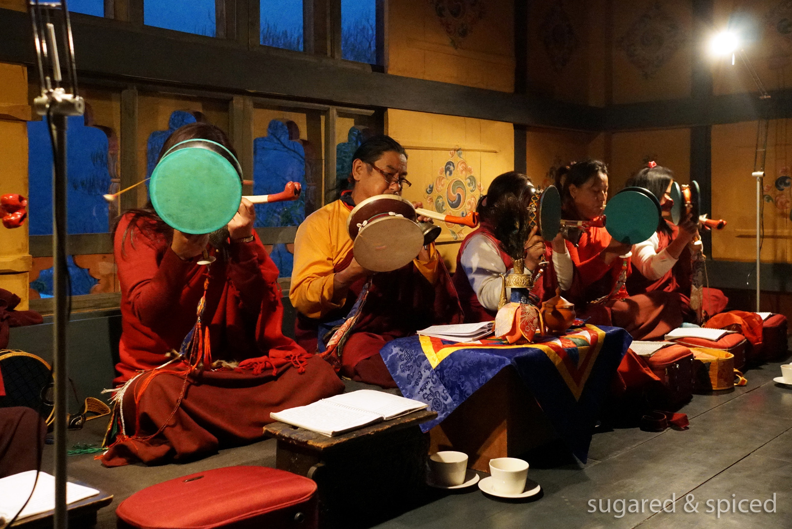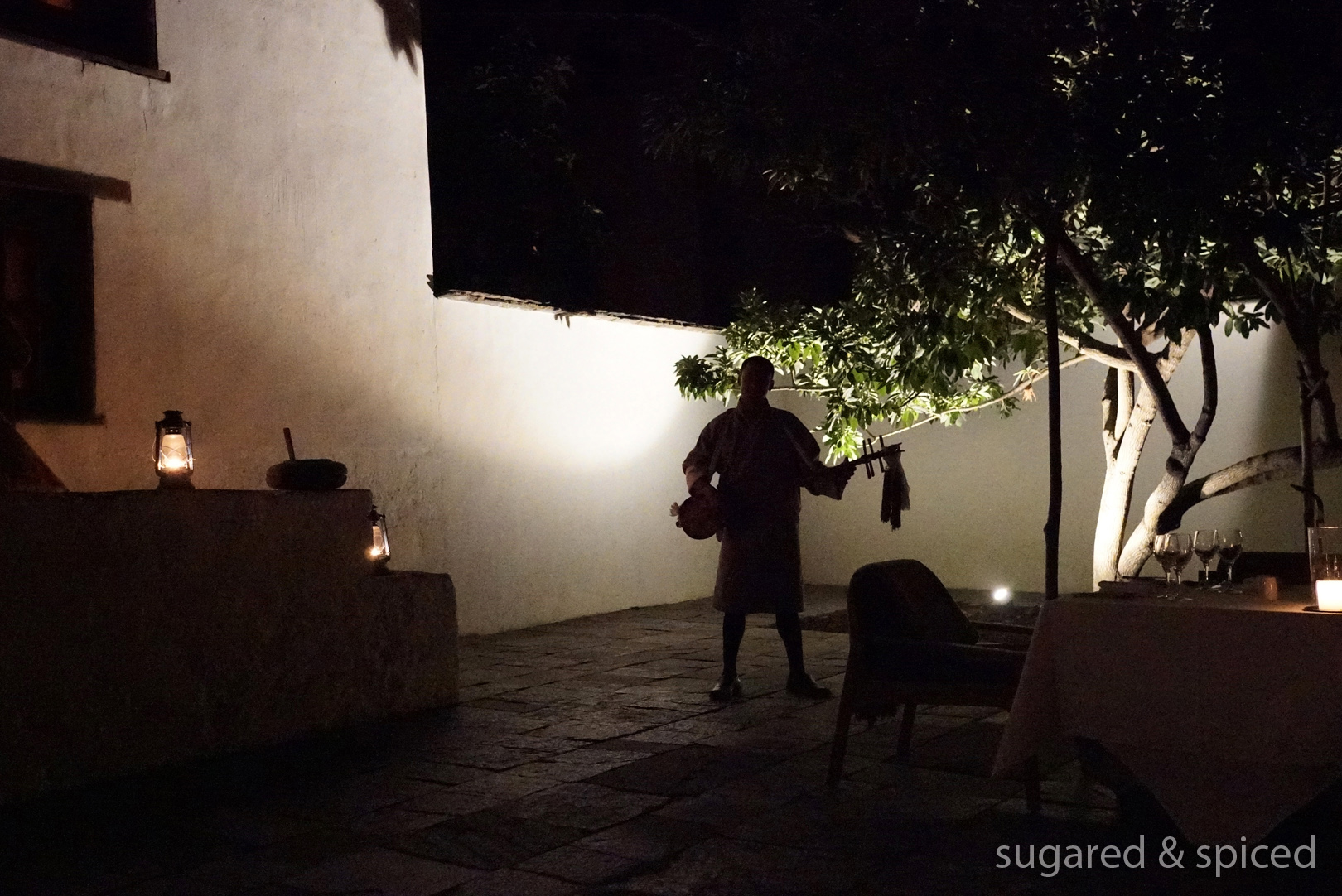As intriguing as I found the eerie sound of kangling to be, my ears much preferred the drangyen (lute) and yangchen (hammered dulcimer) melodies played by this lovely musician during our dinner, which was enjoyed outside on the terrace.