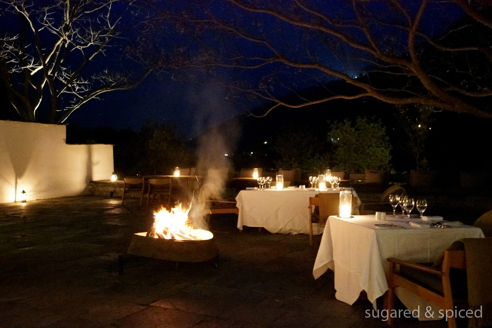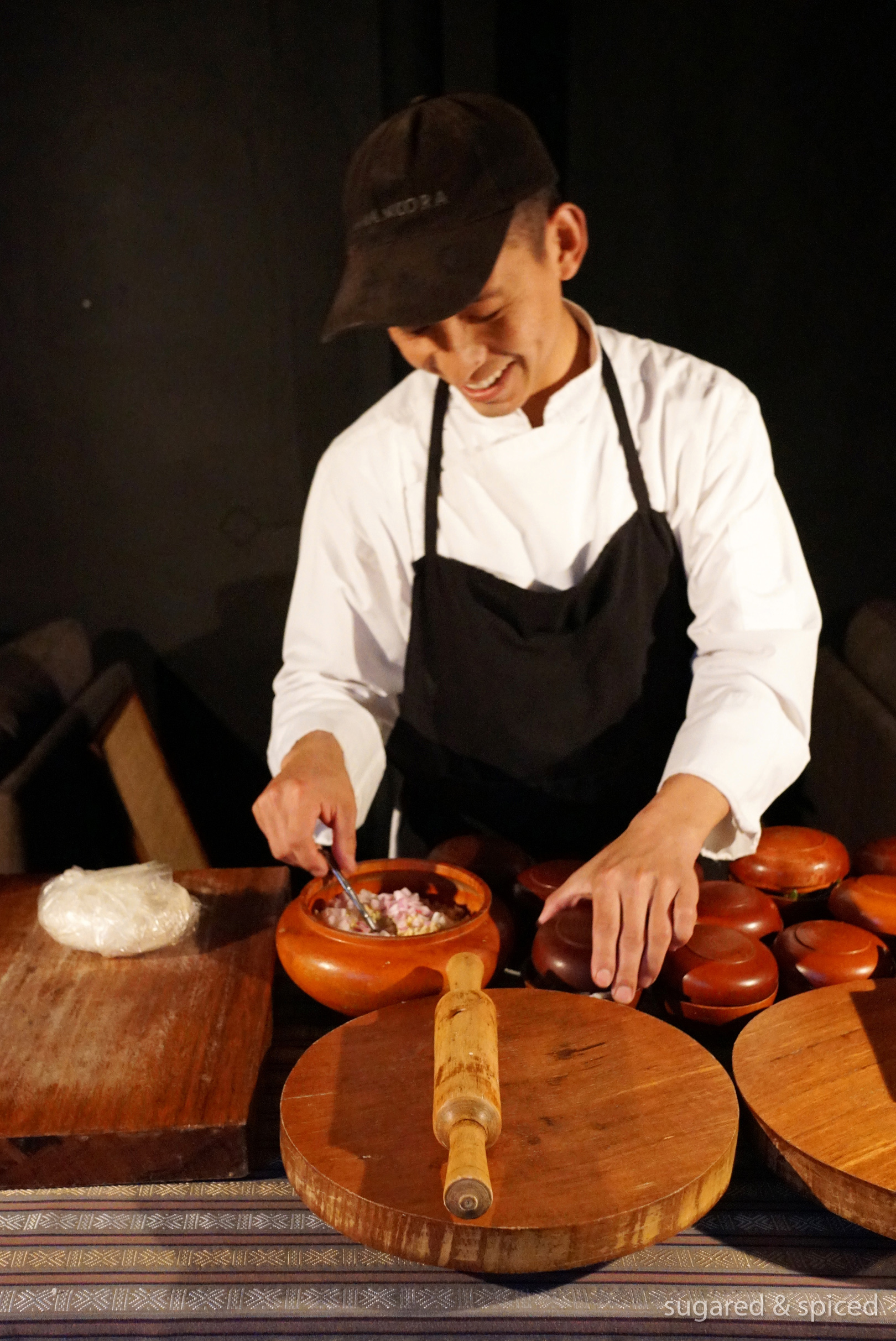 又在梯田中穿梭一個多小時後,回到酒店。天色已晚,鳥兒們唱著傍晚的歌,中庭點上了篝火,一堂烹飪課正等著我們…
