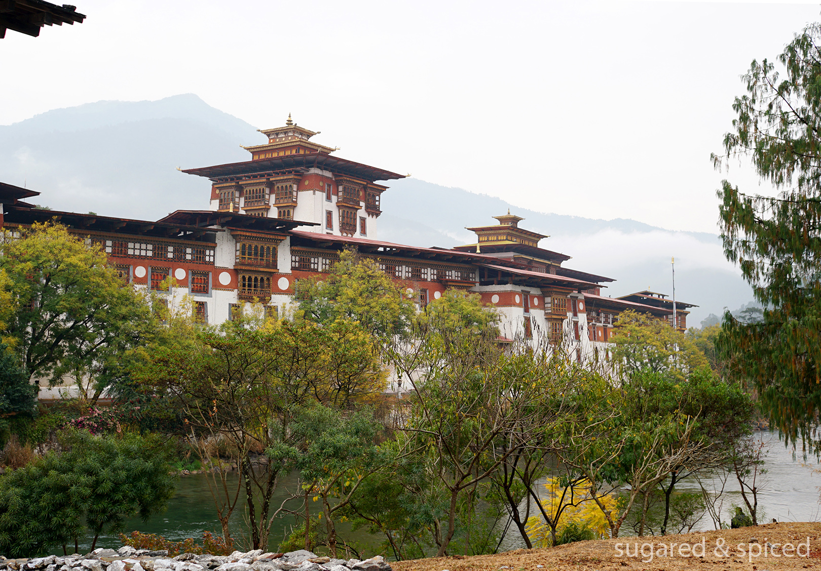 位於公河 (Po Chhu) 與母河 (Mo Chhu) 相匯之處的普納卡宗建於1637年,是不丹歷史裡第二悠久、面積第二大的「宗」(宗 = 堡壘)。聽說這裡的景色在春天藍花楹盛開時最為動人,不過我們到訪時有另一種詩意 – 山頭飄下濃濃的霧,讓堡壘看起來宛如在飄渺的仙境之中。