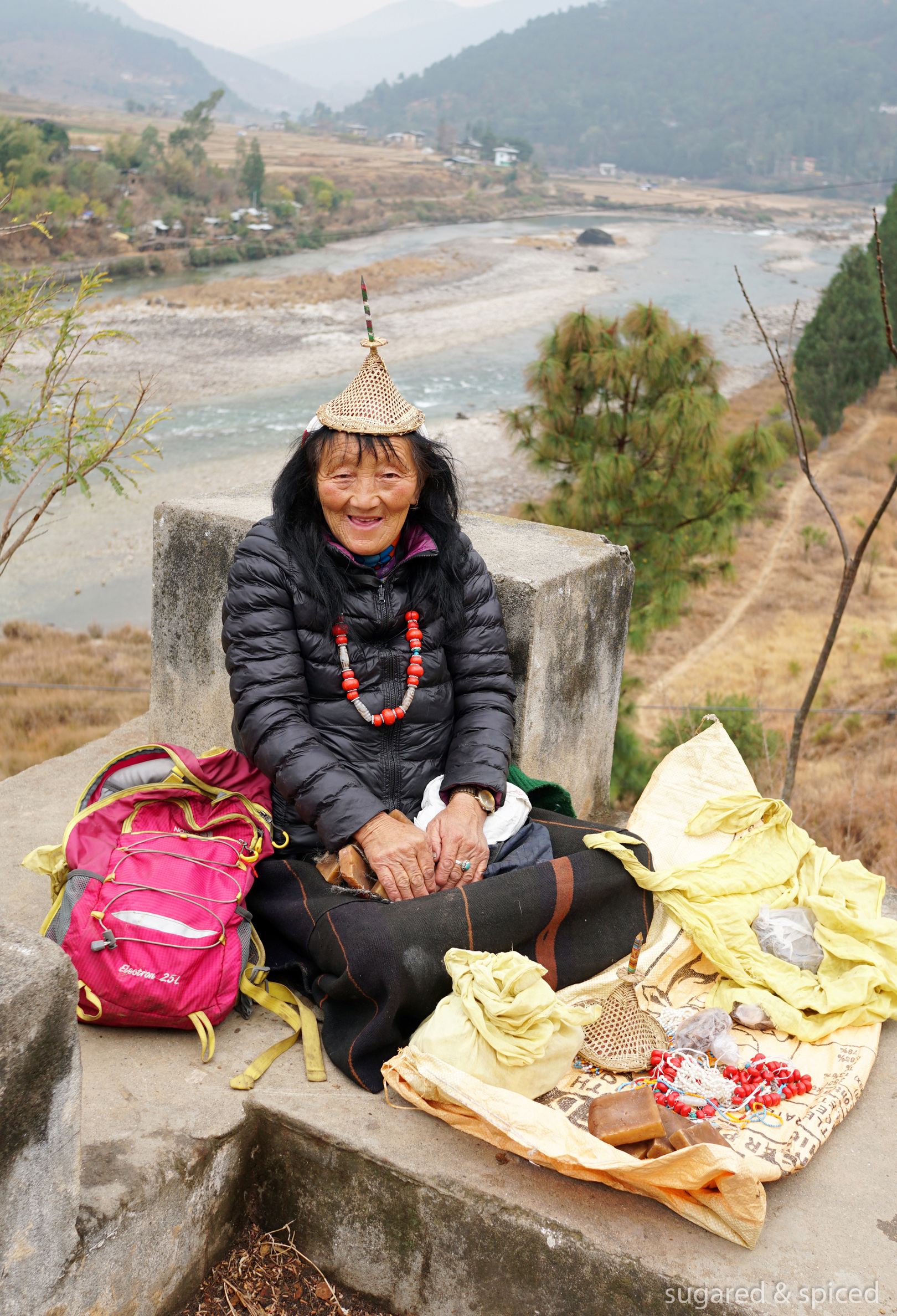 Here, I noticed a woman wearing a conical hat made out of bamboo strips and ends with a sharp point to the sky. Dawa explained that those wearing these conical hats are Layaps, the semi-nomadic yak herders of Tibetan ancestry. They usually live in a settlement of about 100 houses high up at 3800m in Northern Bhutan, but during harsh winters, they come down to stay in lower altitude villages like Punakha. This friendly Layap woman told Dawa that as winter was drawing to an end, she would soon return to the high mountains with her herd.