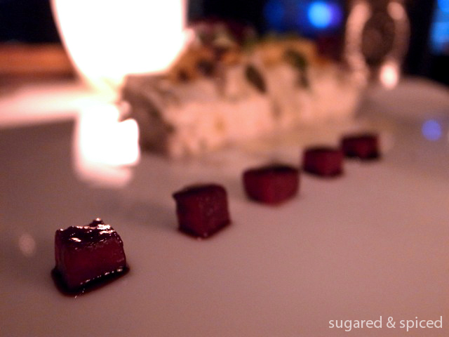 Then came the appetizers – thank god, I can finally stop with the grissini – and first arrived Crab Meat Salad with Fennel, Sicilian Orange and Beetroot (270 HKD). There was a creamy texture to the crab meat salad, I think it was from ricotta cheese but I’m not so sure…it was simultaneously rich and refreshing. Love at first bite.