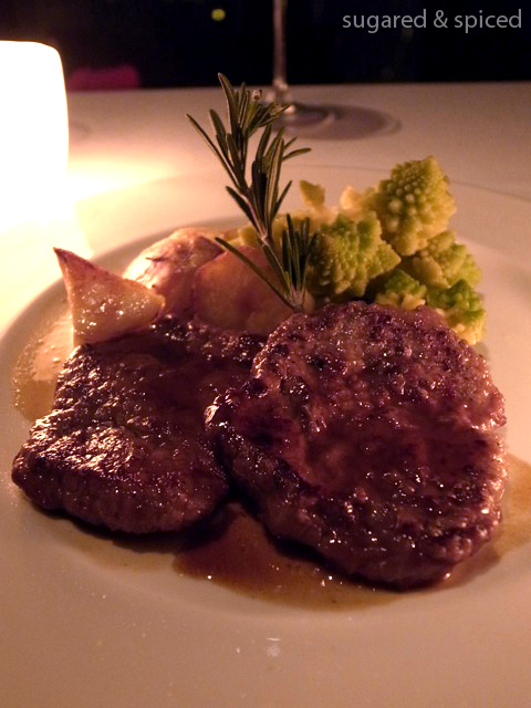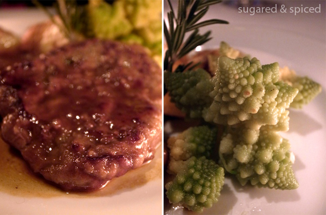 The main courses, Panfried Pomfret with Mashed Potatoes and Artichokes and Veal Escalopes with Marsala, Roasted Potatoes, and Broccoli Rabe were well put together, but somehow neither of them left a memorable mark. It must’ve been the grissinis. I knew I shouldn’t have devoured so many of them.