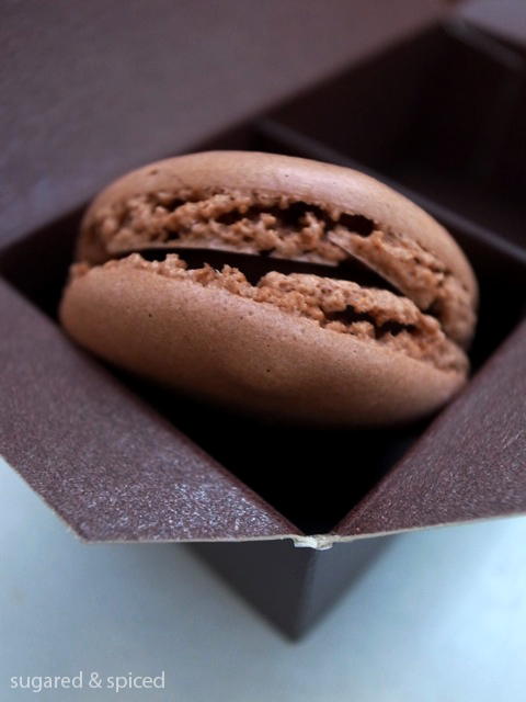 All macarons from La Maison du Chocolat, regardless of what flavor they are, have chocolate ganache-filled centers. On this visit, I tried the passionfruit and procelana (chocolate).