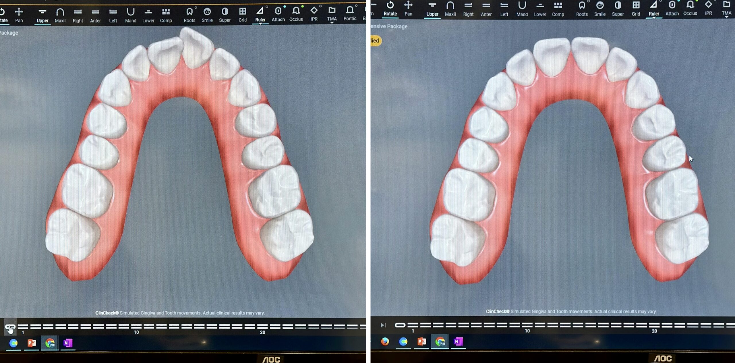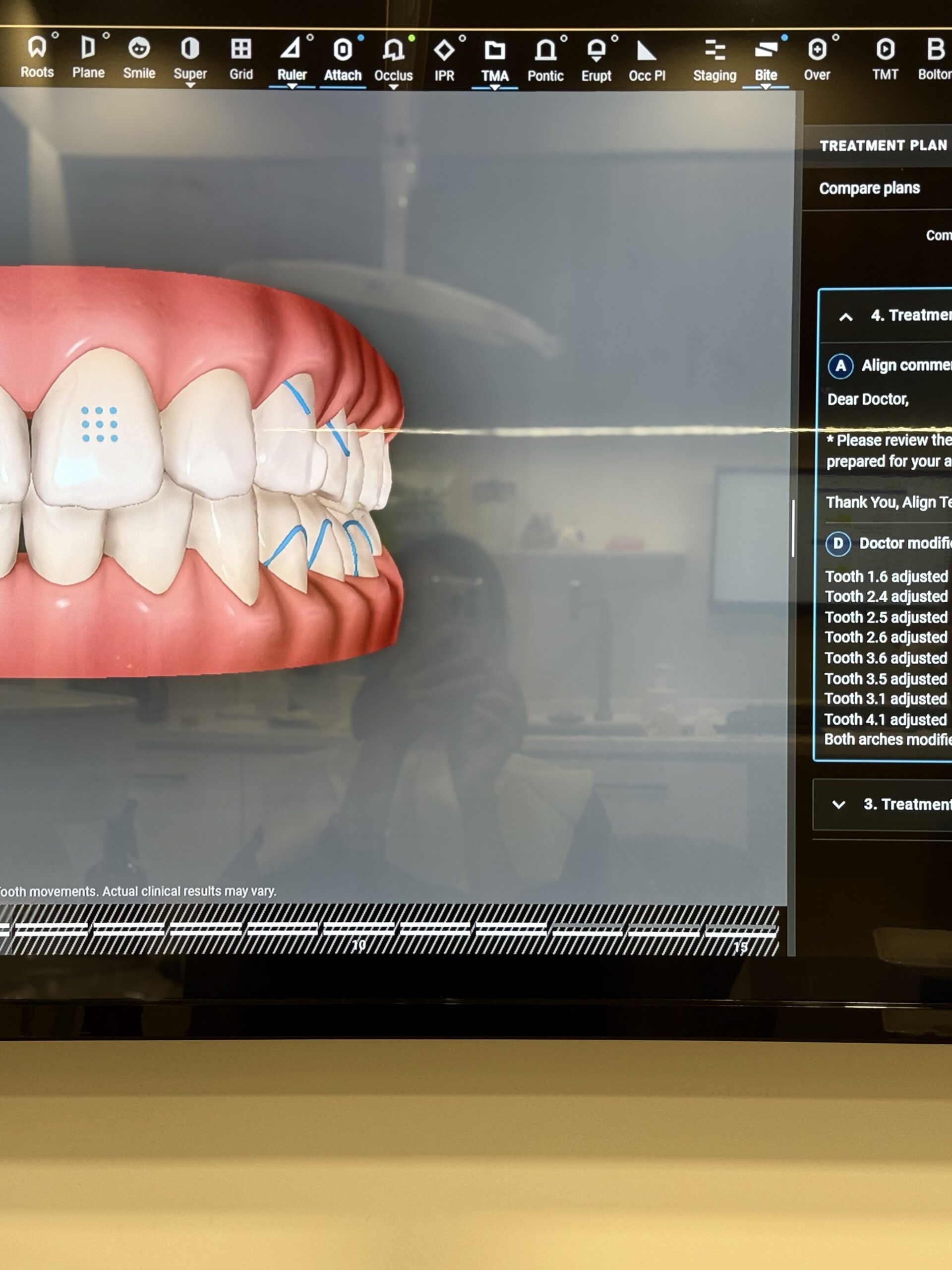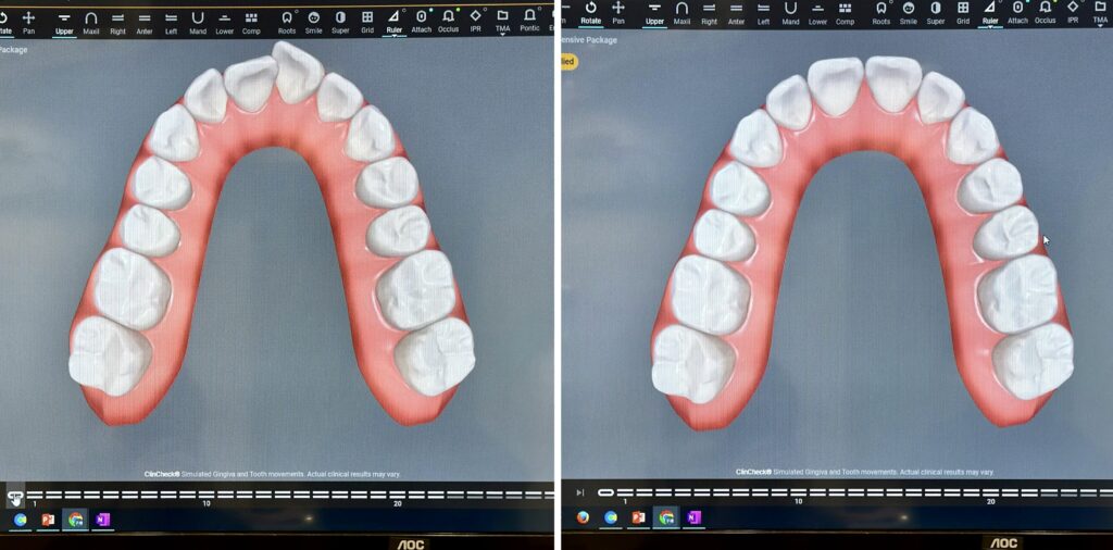 若要說中期有什麼不習慣的地方,那就是因為牙齒排列的調整需要一顆一顆調,所以過程中會有後方齒縫變大的問題(下方影片可以看到這個情況)。雖然只是暫時性的,但這段期間吃東西很容易卡,每餐飯後都必須用牙線和牙間刷清理,得花一些額外的時間跟工夫。