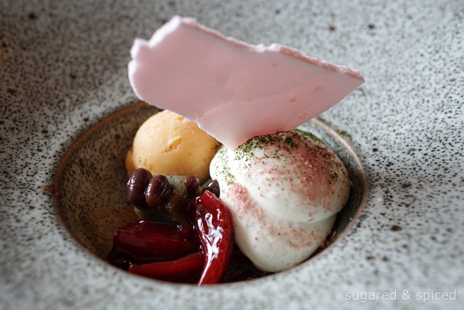 Apricot ice-cream, marinated strawberries, adzuki beans, meringue