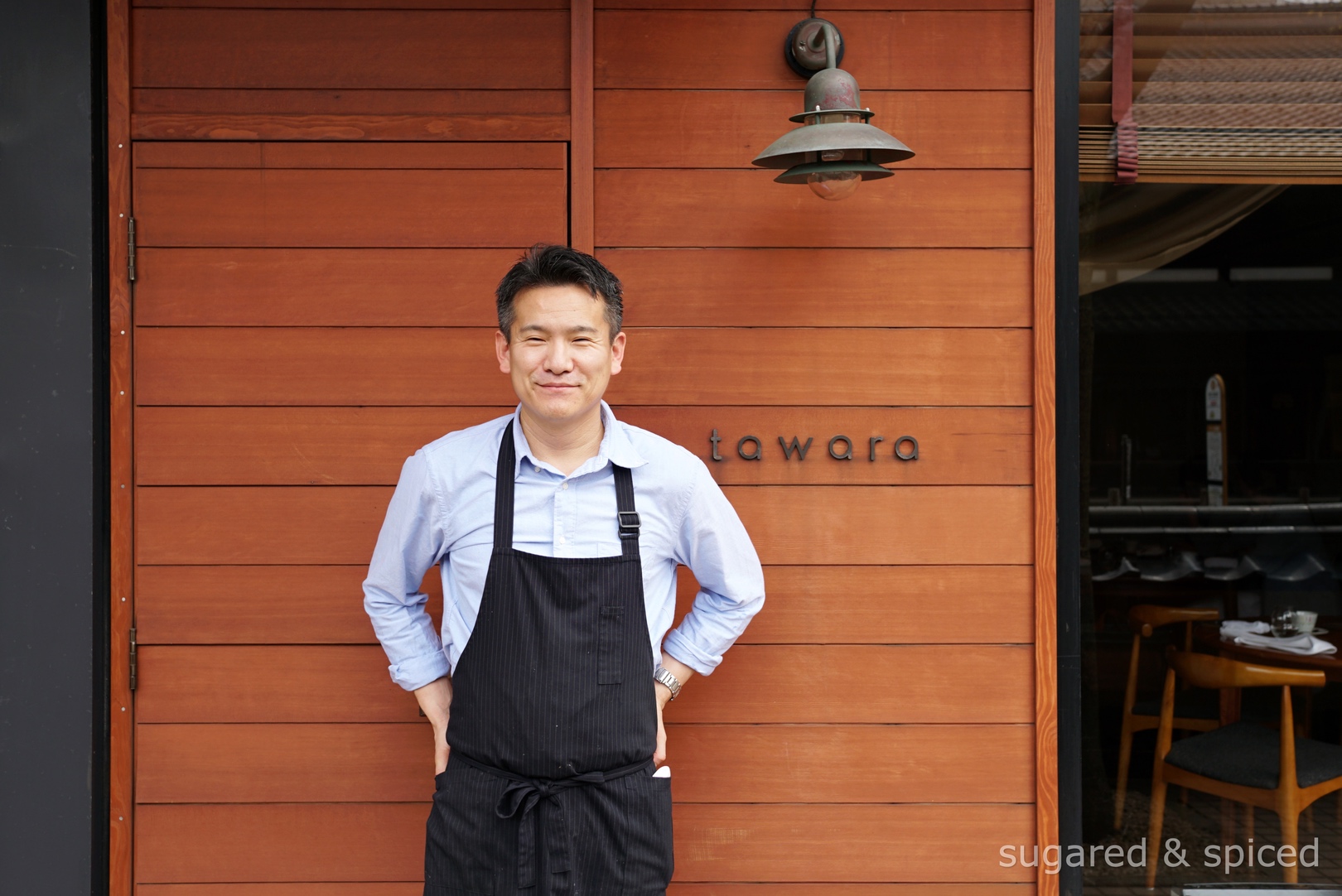 抵達金澤已經中午,直接前往午餐地點 – Tawara。主廚俵徹也先生(Tawara 是 “俵” 的日語發音)是土生土長的金澤人,在法國普羅旺斯、佩里格(Périgord)、以及京都的名店修業多年後,於2012年回到自己的家鄉,在古色古香的街道上開了這樣一家小小法式餐廳。