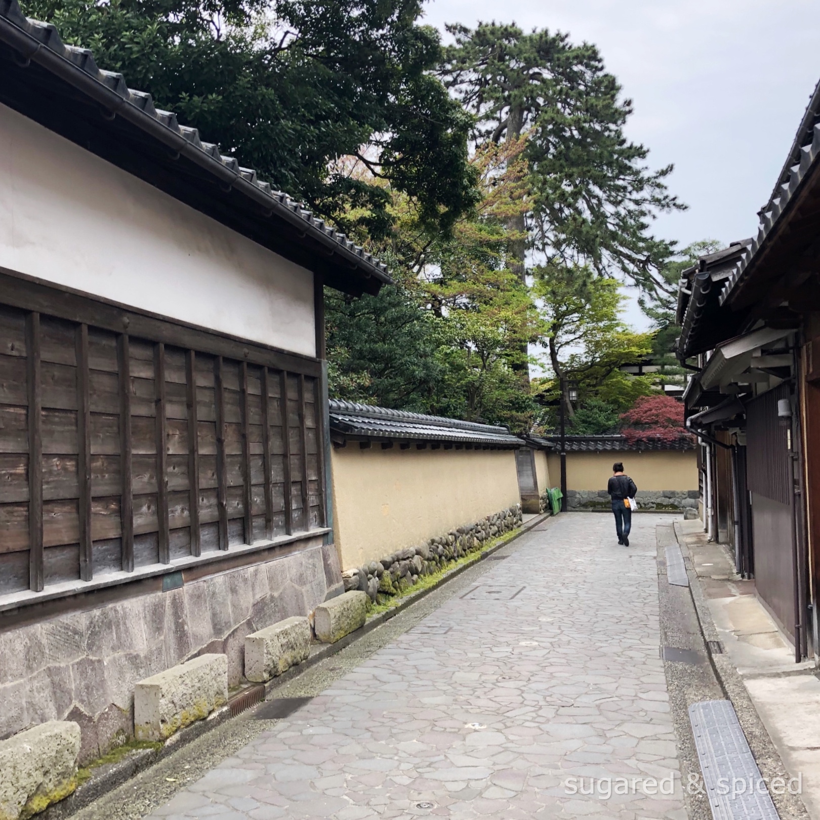 Then, a casual stroll through Nagamachi Samurai District, where samurai and their families used to reside. Though now converted to a residential neighborhood, the area still preserves a historic atmosphere with its earthen walls, narrow lanes and water canals.