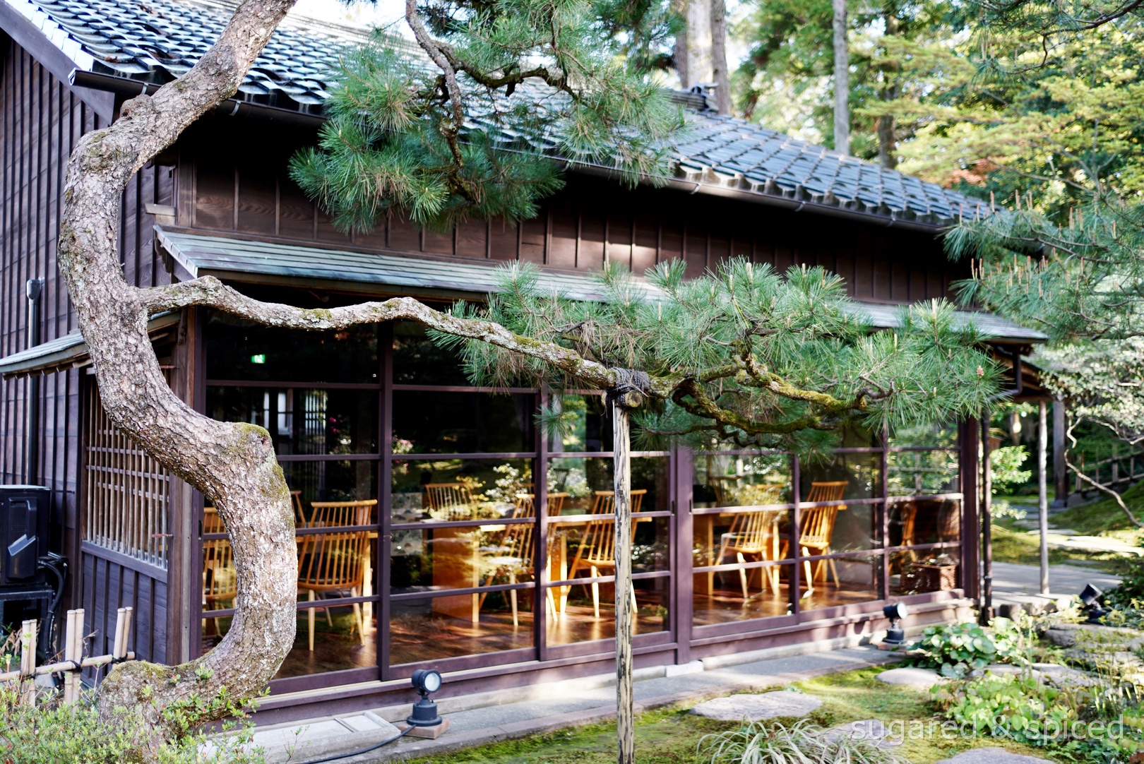 花園裡除了有金澤最古老茶室 “麗雪亭” 以及裏千家的茶室 “寒雲亭”(喝茶要先預約),還有一家米其林一星餐廳 “金澤玉泉邸”。沒吃過無法評論,不過看照片很美,而且午餐似乎只要 3500-7000日元,以米其林餐廳來說很平易近人。