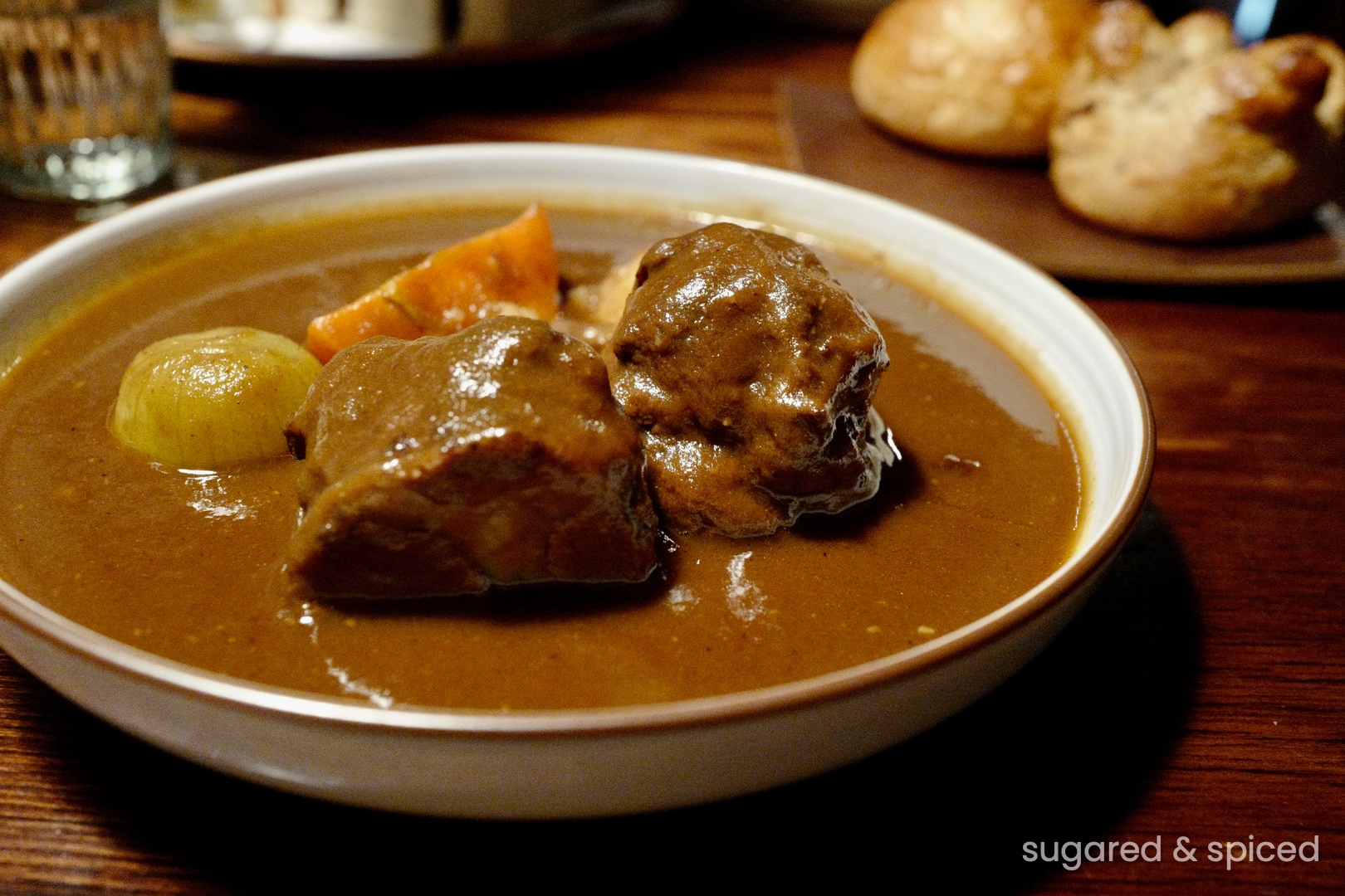 紅酒燉牛肉,搭配麵包。