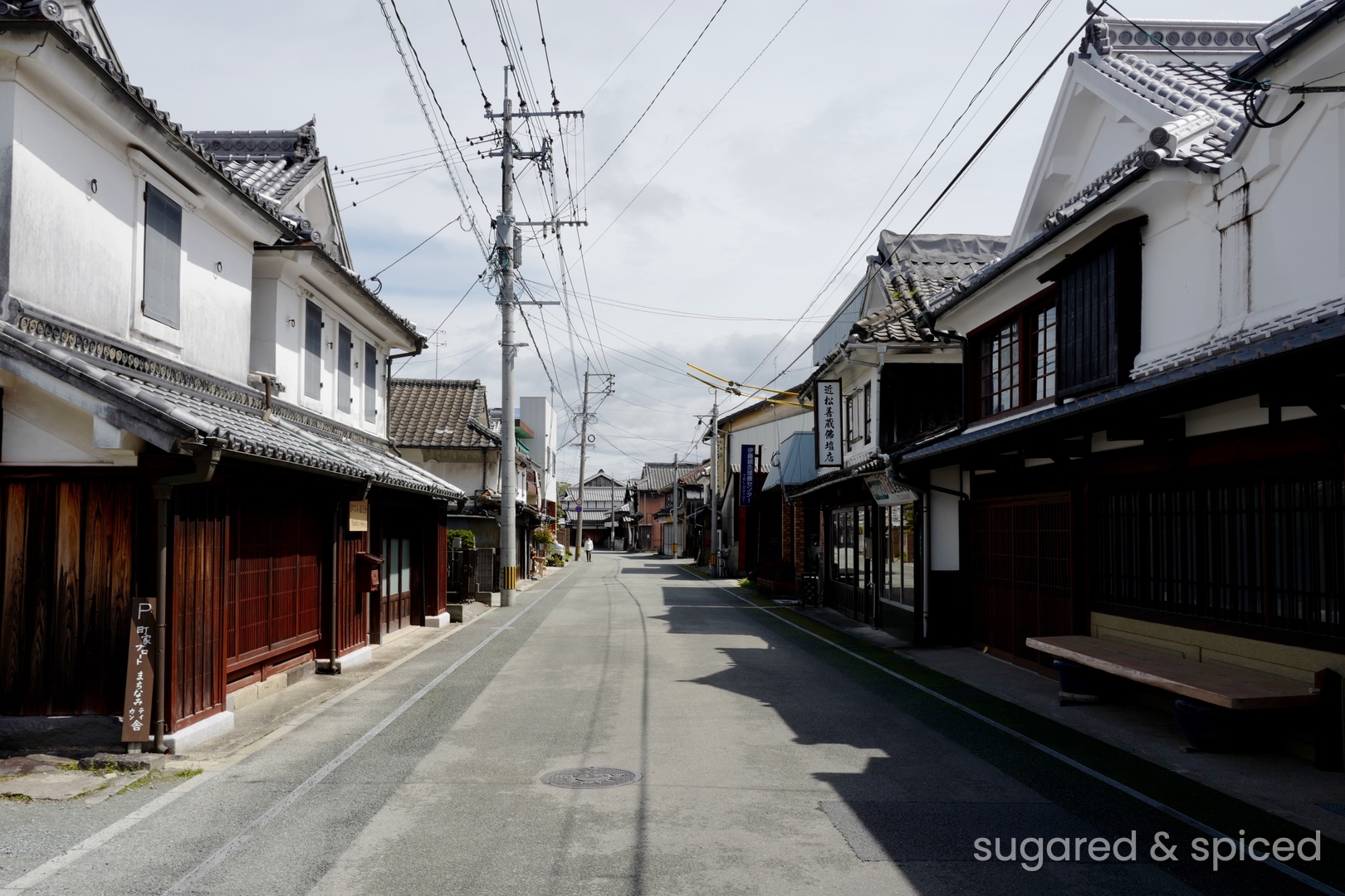 在白牆黑瓦、古色古香的小鎮裡散步本身就是一種享受,而且我們到訪時正好是櫻花滿開的季節,四處都飄散著白和淡粉色的浪漫。