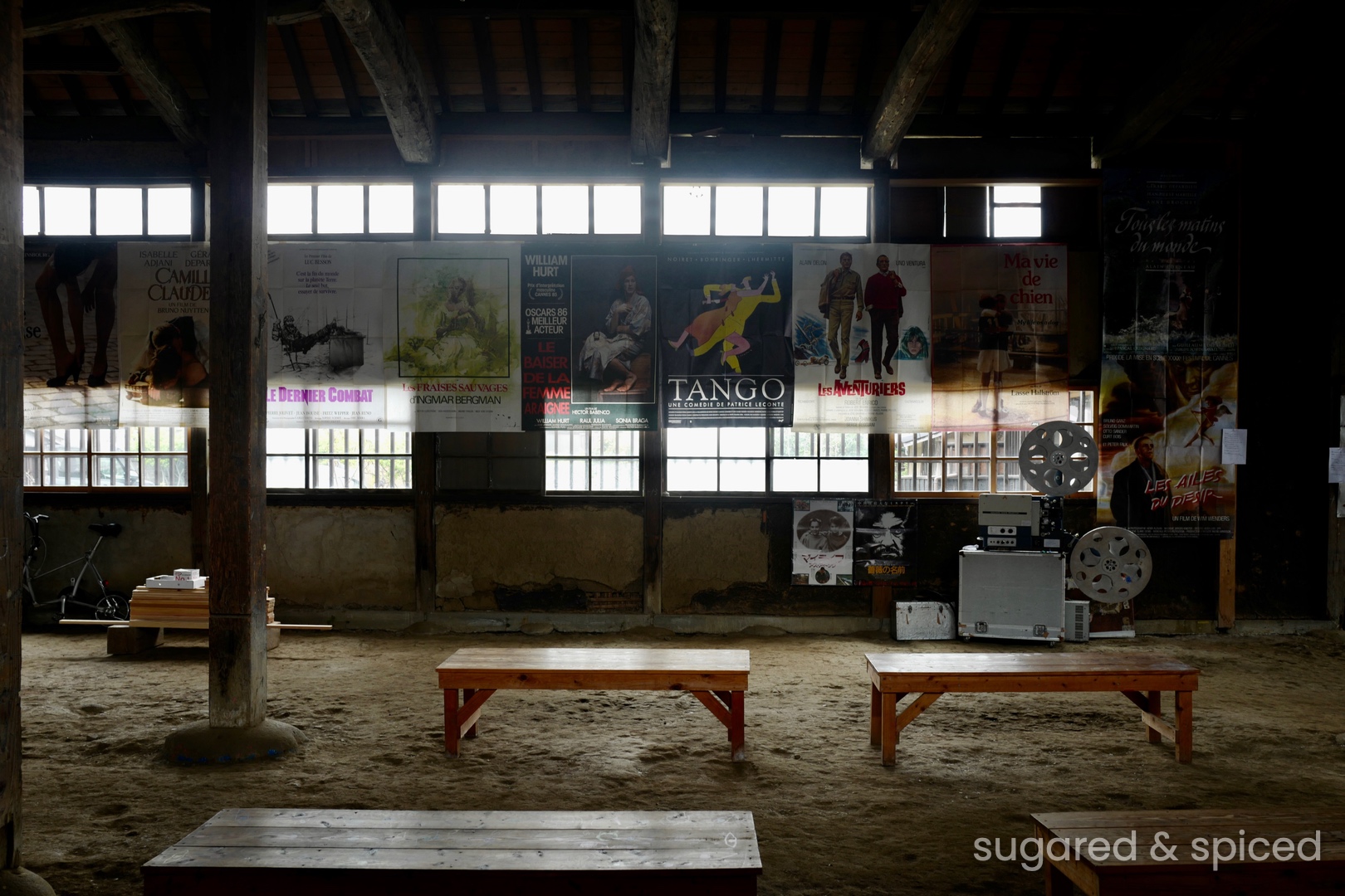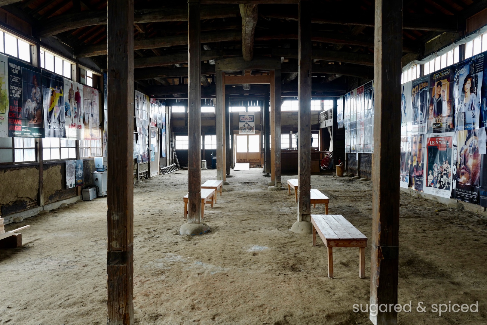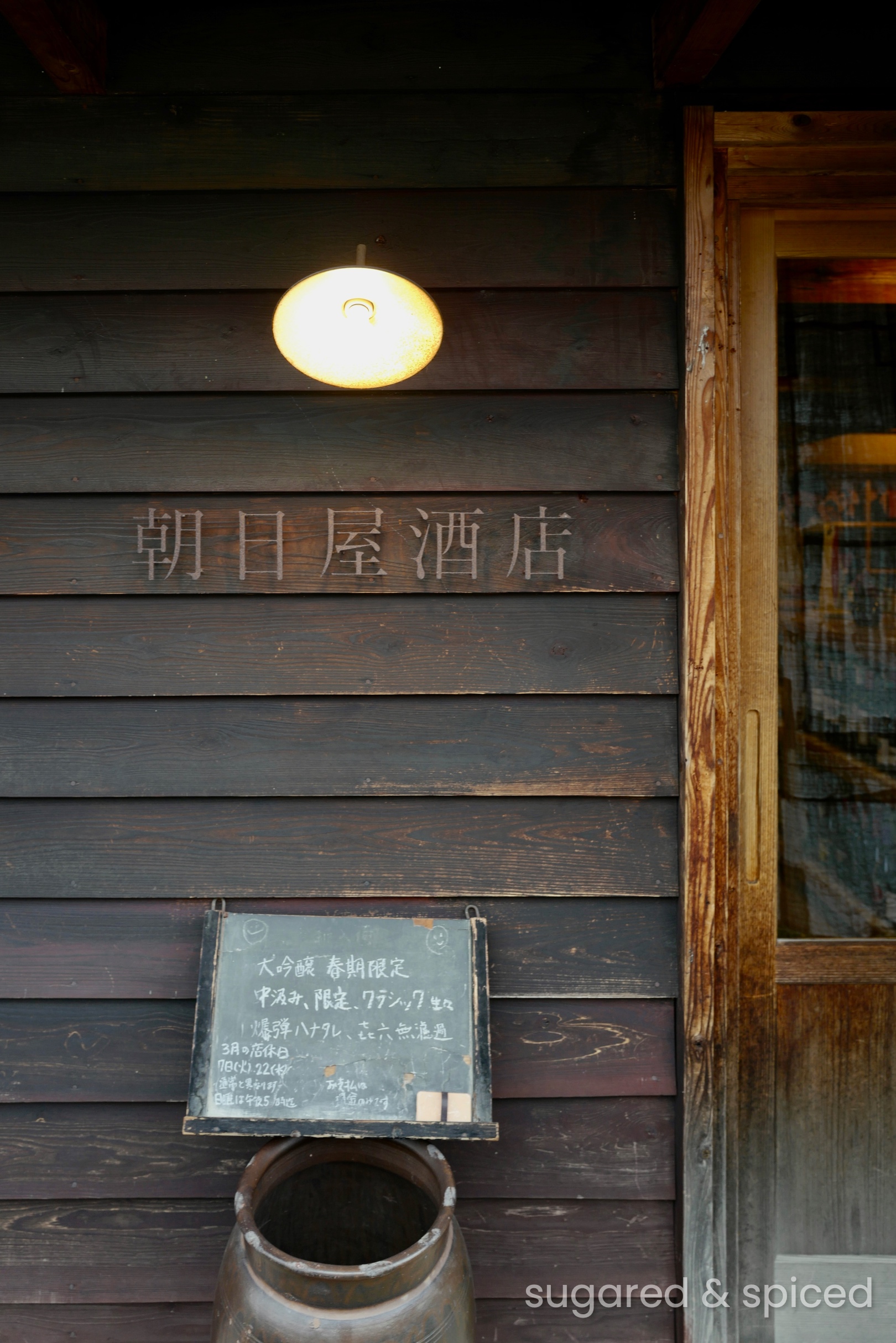 朝日屋酒店是清酒和燒酎的專賣店,地點非常特別,是原本的八女郡役所(政府行政中心)的所在處。店後方有大片挑高的空間用來辦活動和展覽,我們到訪時正在展出老電影海報。和我們在八女碰到的所有人一樣,朝日屋酒店的老闆非常熱情友善,跟我們介紹了很多關於店與郡役所建築的趣事,是一段雖然短暫但很溫暖的邂逅。