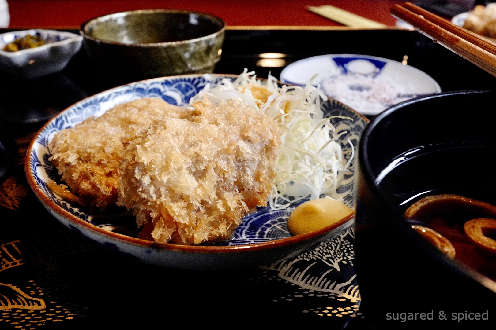 Yoshioka is a tonkatsu (fried pork cutlet) specialty restaurant with a pleasant atmosphere and many semi-private rooms, perfect for those traveling with kids like us. The lunch set includes a roast beef appetizer, fried pork cutlet made with Kinako pork from Hazama Farm (located in Miyakonojo, Southern Kyushu), and coffee with ice-cream to finish.