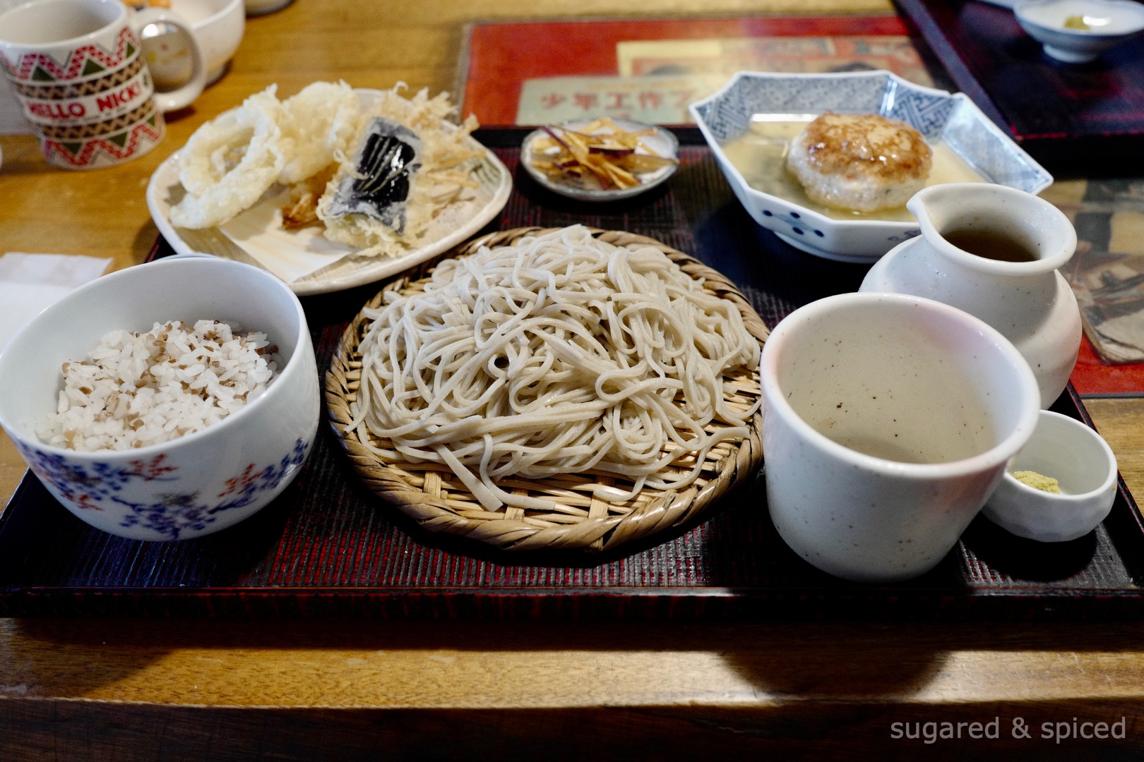 2010年就開幕的そば季里 史蔵是一家在當地相當有人氣的蕎麥麵專賣店,店入口的黑板上寫著當天所使用的蕎麥來源,並跟老闆自家耕種收割的蕎麥混合後,做成當日的蕎麥麵。我們選了每日限量的 “きこり膳”(Kikori Zen)套餐,包含了蕎麥麵、天婦羅、豆腐漢堡、飯、漬菜…美味而令人滿足的一餐,而且居然只要1000日圓。建議在開門前10分鐘就來排隊,因為店內座位非常少,若沒坐到第一輪,可能就要等上好一陣子嘍。