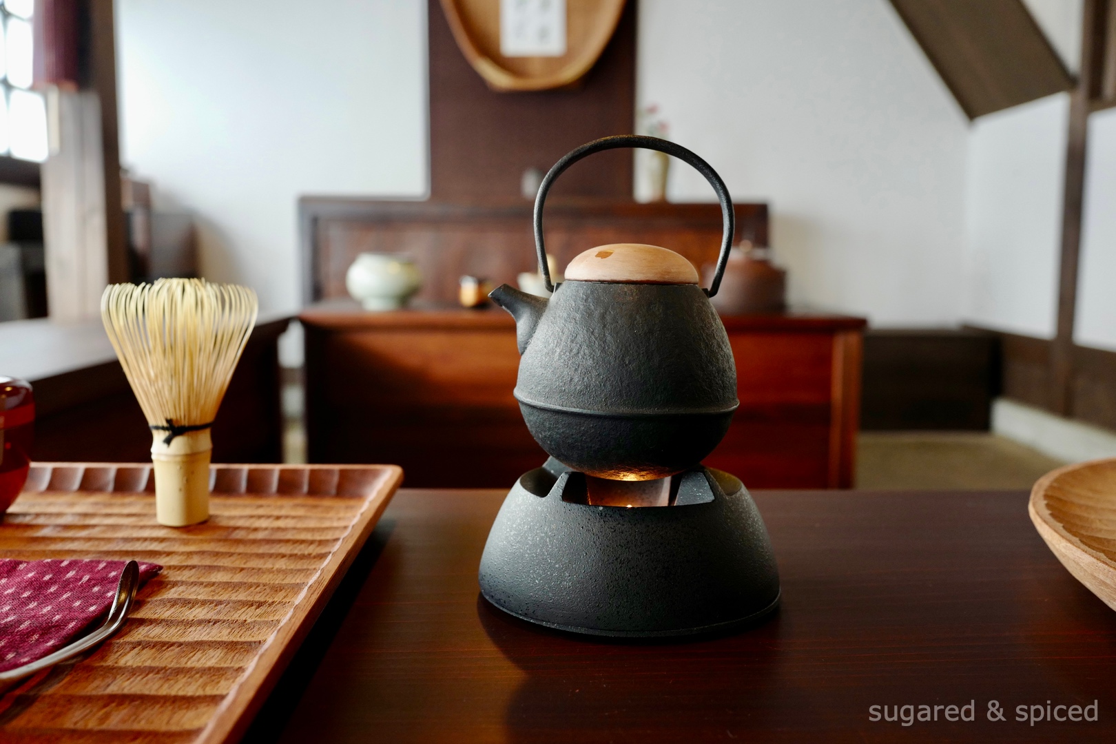 茶房 まるや (Maruya) 的女主人堀アスカ(Asuka Hori)透過輕鬆的茶會,讓客人在無需拘泥於日本傳統茶道繁複規矩的情況下,認識並享用八女的綠茶。茶室簡樸而雅緻,桌上擺放著八女當地職人所製作的茶具,可以根據自己的喜好選擇使用。我們在 Hori-san 的指導下用茶筅將抹茶攪打出細緻濃稠的小泡沫,再搭配當地名店 Kikuya 的季節和菓子,是個相當美好愉快的午後體驗。過程大約1小時,可以通過Craft Inn或UNA Labs預定(費用3800日幣/人)。