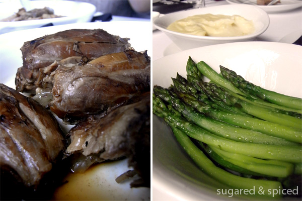 Main courses: black pig honey roasted ham and roasted lamb shanks, served with mashed potatoes and asparagus. Nothing seems particularly remarkable about the main courses – they were served in huge portions, unadorned – until I tasted the pork. Though slightly on the salty side, it was juicy and full of flavor from the onions. The lamb shank, on the other hand, was rather bland – I couldn’t barely finish half of piece.