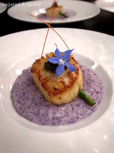 The combination of seared scallops and caviar is undoubtedly an attraction in itself, but what made this dish sparkle was the cauliflower shavings in almond and mascarpone sauce. It was at once creamy and crunchy, and the elegant purple color! I couldn’t get over that purple color.