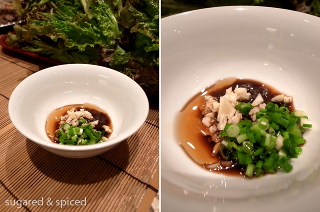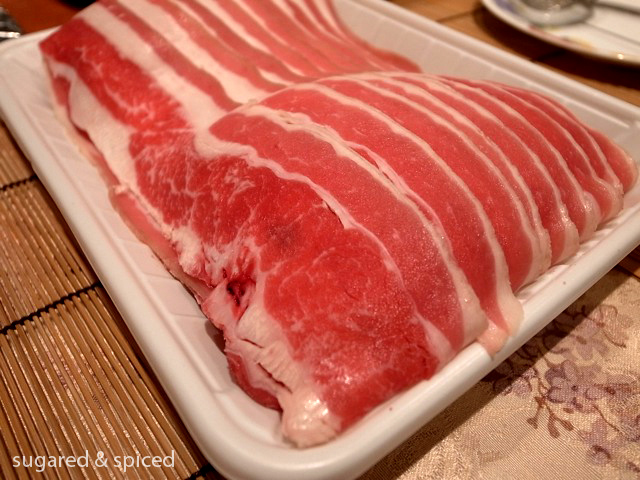 Condiments: shacha sauce, soy sauce, sesame oil, garlic, and scallions. It is typical to add a raw egg to the sauce, but since we didn’t have any that were trustworthy enough to be eaten raw, we skipped that for the evening.