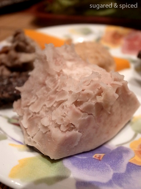 Taro, my favorite! It’s really difficult to buy fresh taro of good quality in Shanghai, so it’s a good idea to get frozen ones from Taiwanese supermarkets. When cooked through, the texture should be soft and powdery, somewhat similar to that of chestnuts or potatoes.