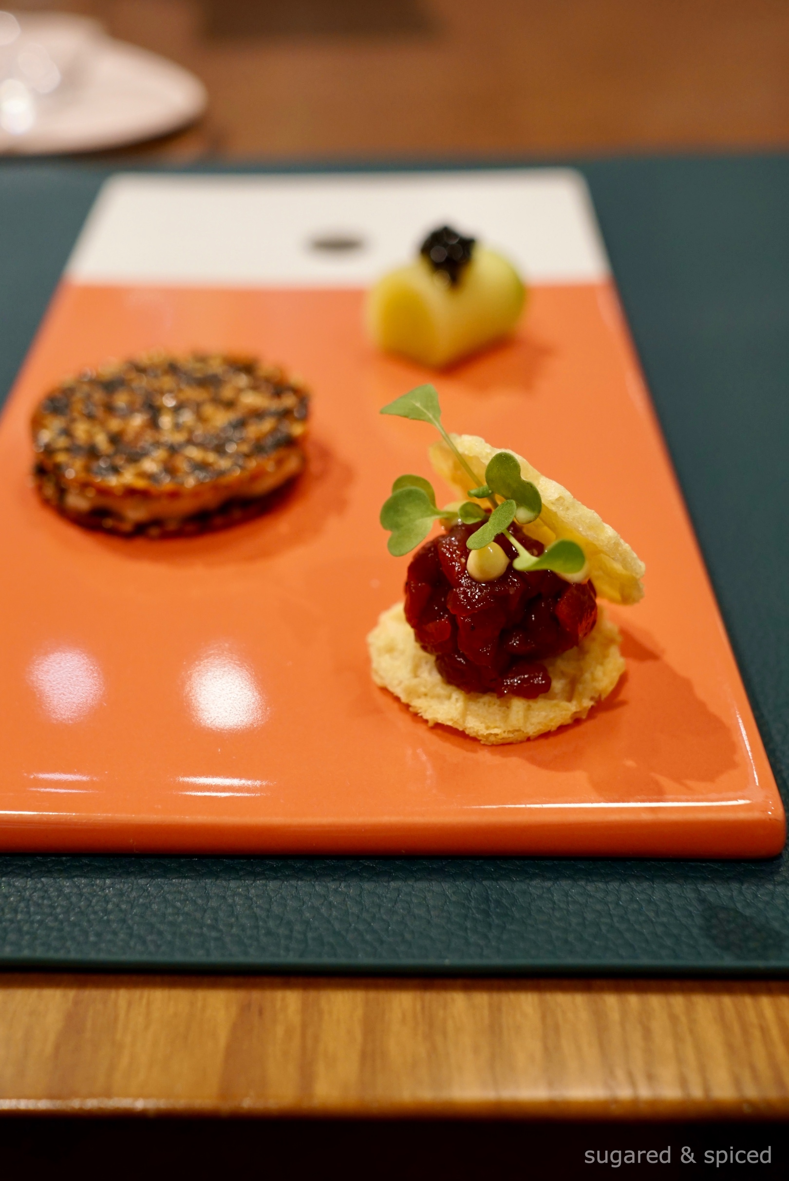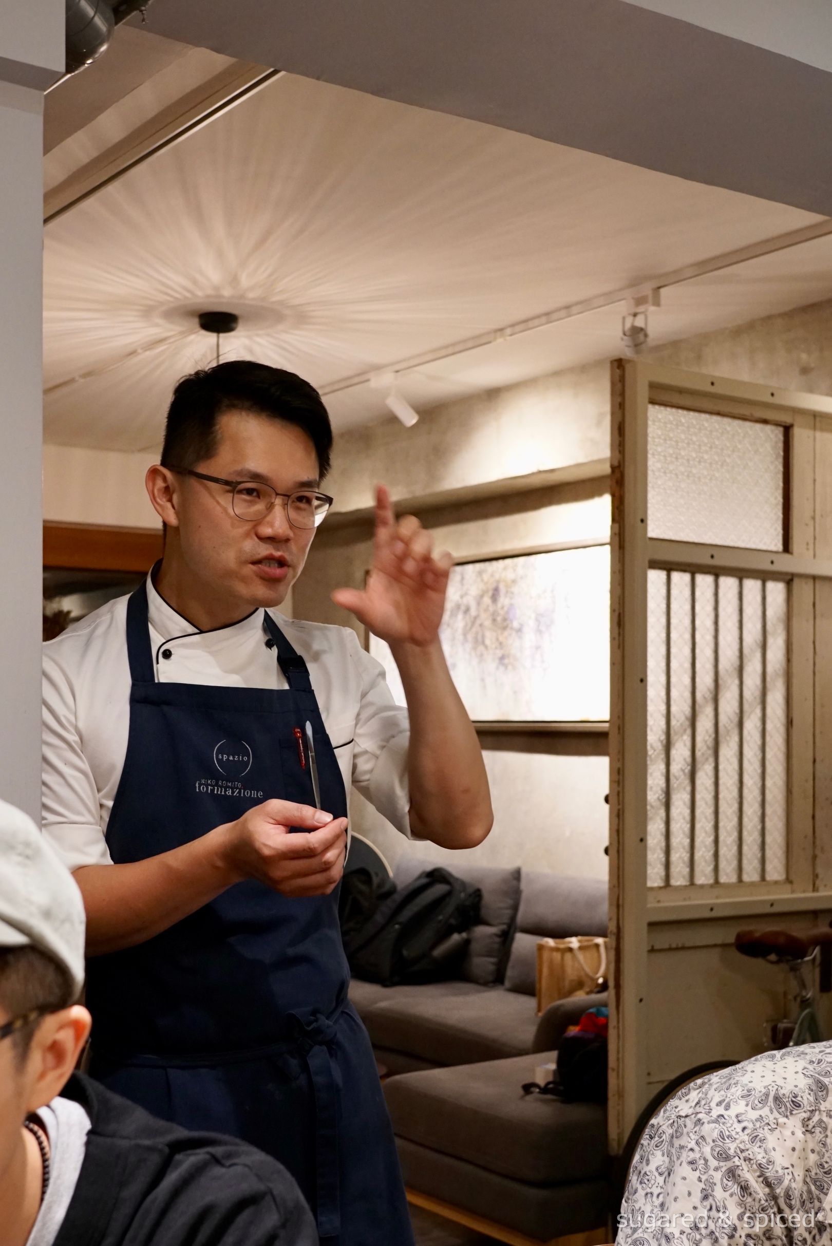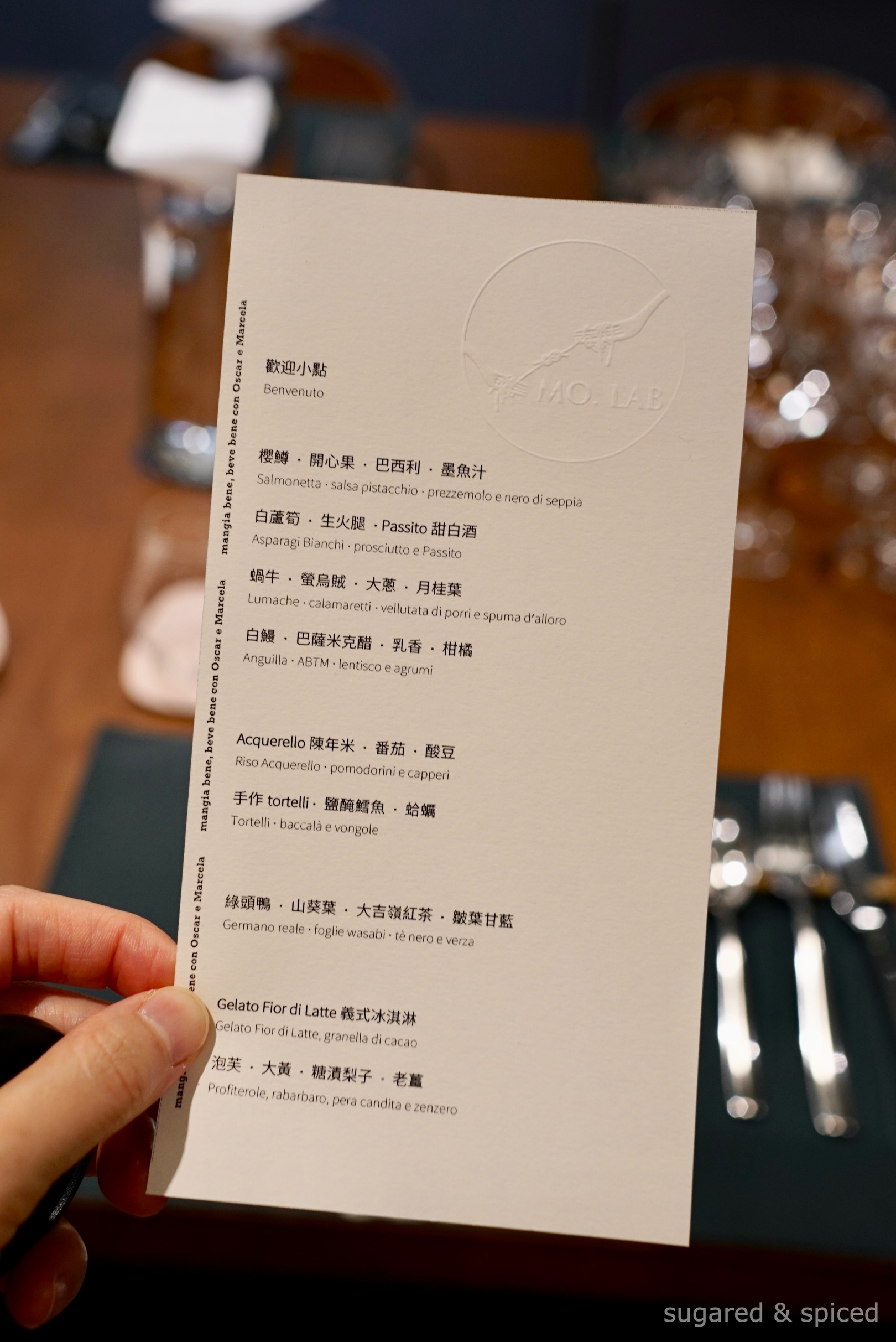 And just a few weeks before our dinner, Liz from Taster happened to put up an interview with Oscar, the chef and co-owner of MO. Lab, on her podcast channel. It was absolutely riveting to hear about Oscar’s career leap from being a diplomat in the Vatican to joining the legendary kitchens of Niko Romito. So it was with great expectations and curiosity that I stepped into MO. Lab on this balmy spring night in April…